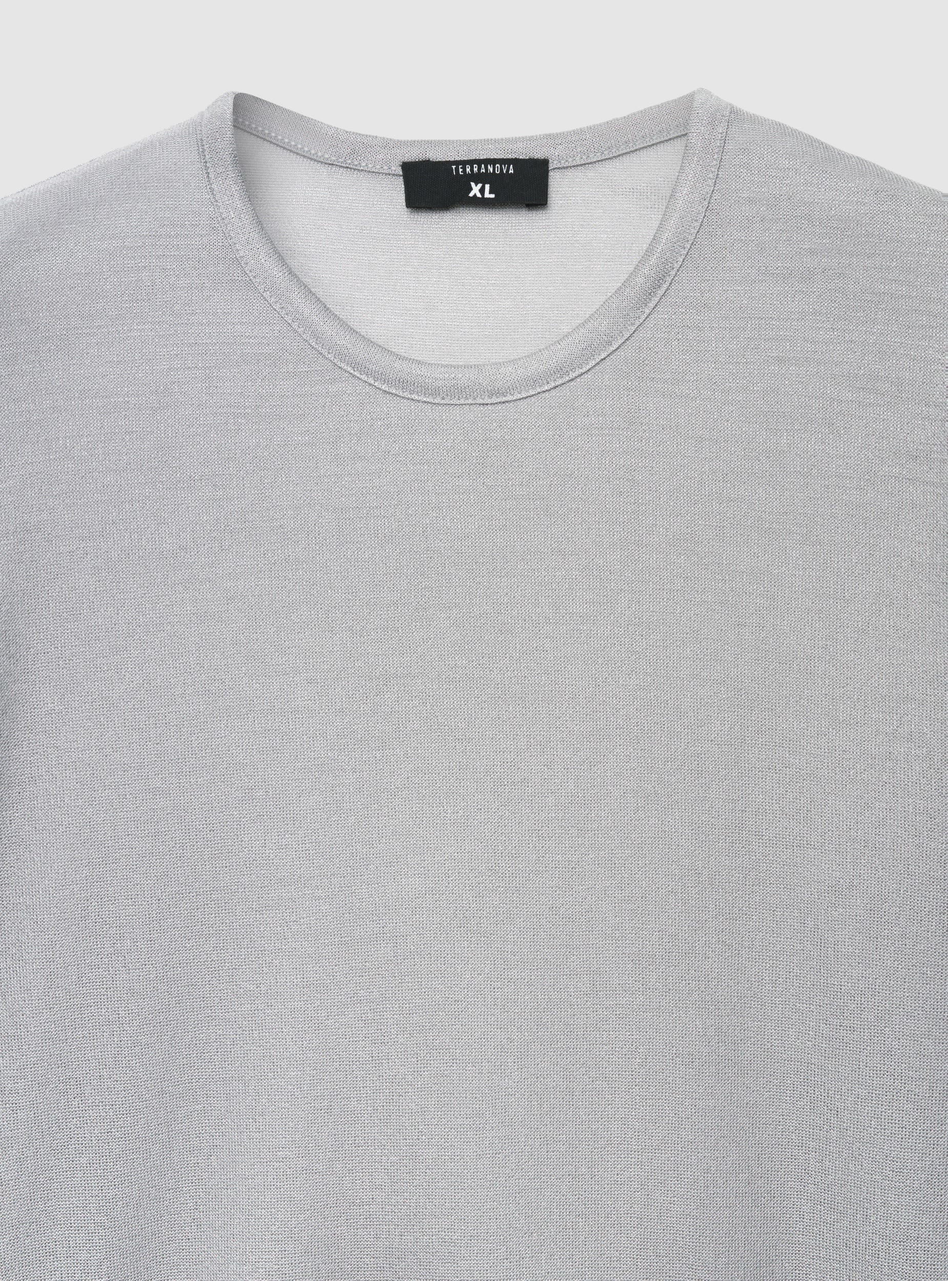 Muška majica dugih rukava s okruglim izrezom, idealna za svakodnevne ili večernje kombinacije. Jednobojni dizajn s sjajnim završnim slojem. Regularan kroj, lako se kombinira s trapericama ili chino hlačama, ili se može nositi ispod jakne uz tenisice za urbani stil.Detalji