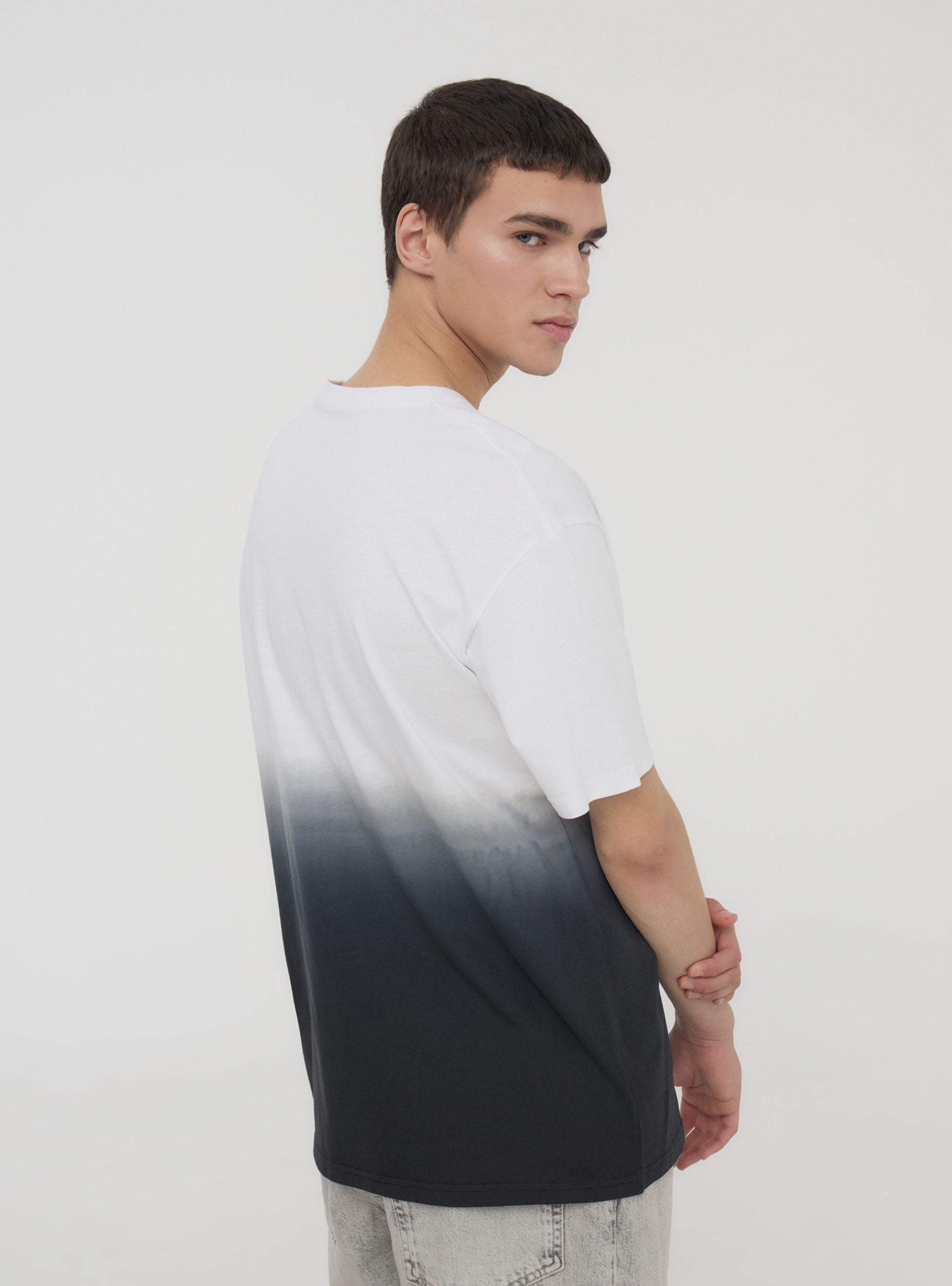 Muška majica modernog i svestranog stila, s opuštenim krojem za maksimalnu udobnost. Kratki rukavi i okrugli izrez osiguravaju praktičnost, dok efekt ombre daje originalan i dinamičan dodir. Savršena za kombiniranje s trapericama, bermudama ili joggericama, idealna je za ležerne lookove prikladne za slobodno vrijeme, izlazak u grad ili neformalne večeri s prijateljima.Detalji