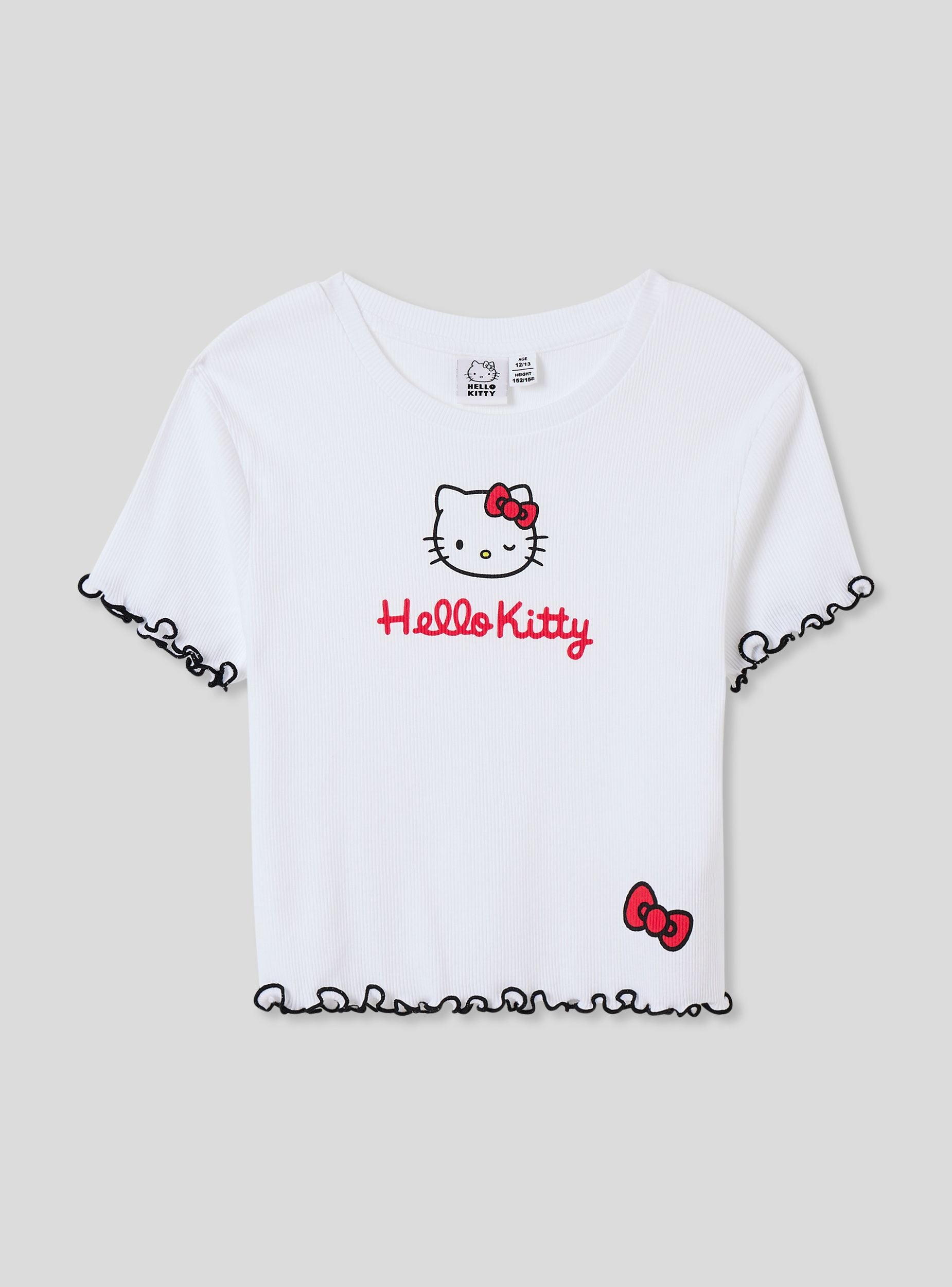 Dječja majica idealna za dodavanje razigranog dodira garderobi. Savršena za trenutke zabave, ima kratke rukave, okrugli izrez i živopisni Hello Kitty® print koji osvaja na prvi pogled. Kontrastni rubovi upotpunjuju dizajn, čineći je jedinstvenom i prikladnom za svaku neformalnu priliku.Detalji
