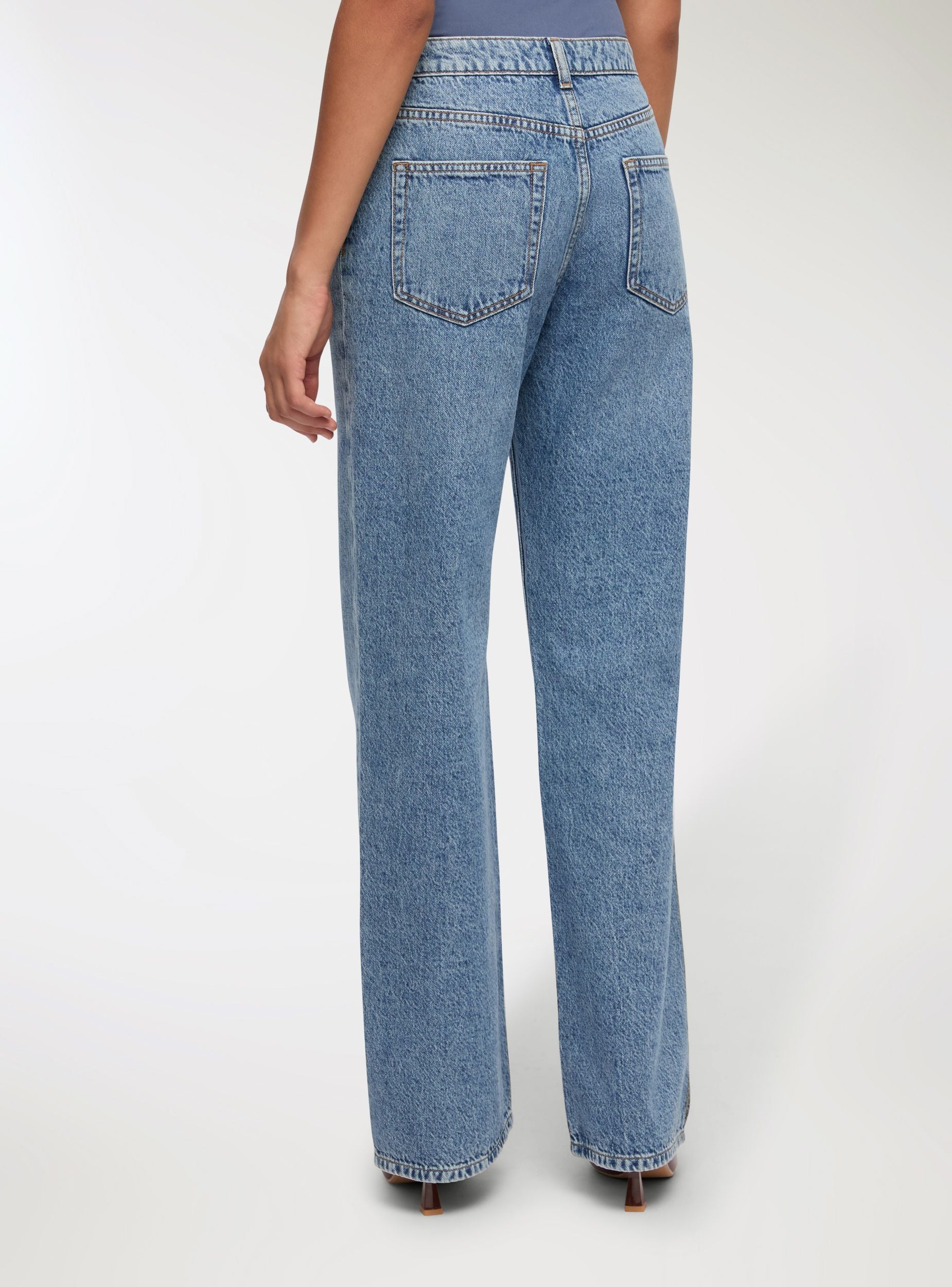 Ženski traperice ravnog kroja, s redovitom strukom i lagano širokim nogavicama koje se nježno spuštaju do dna. Fit je osmišljen da istakne siluetu uz zadržavanje udobnosti, idealan za svakodnevni ležeran izgled ili u kombinaciji s elegantnijim komadima za svestran stil. Srednje pranje daje autentičan i bezvremenski denim efekt, savršen za svaku sezonu. Obavezan komad u ženskom ormaru.Detalji