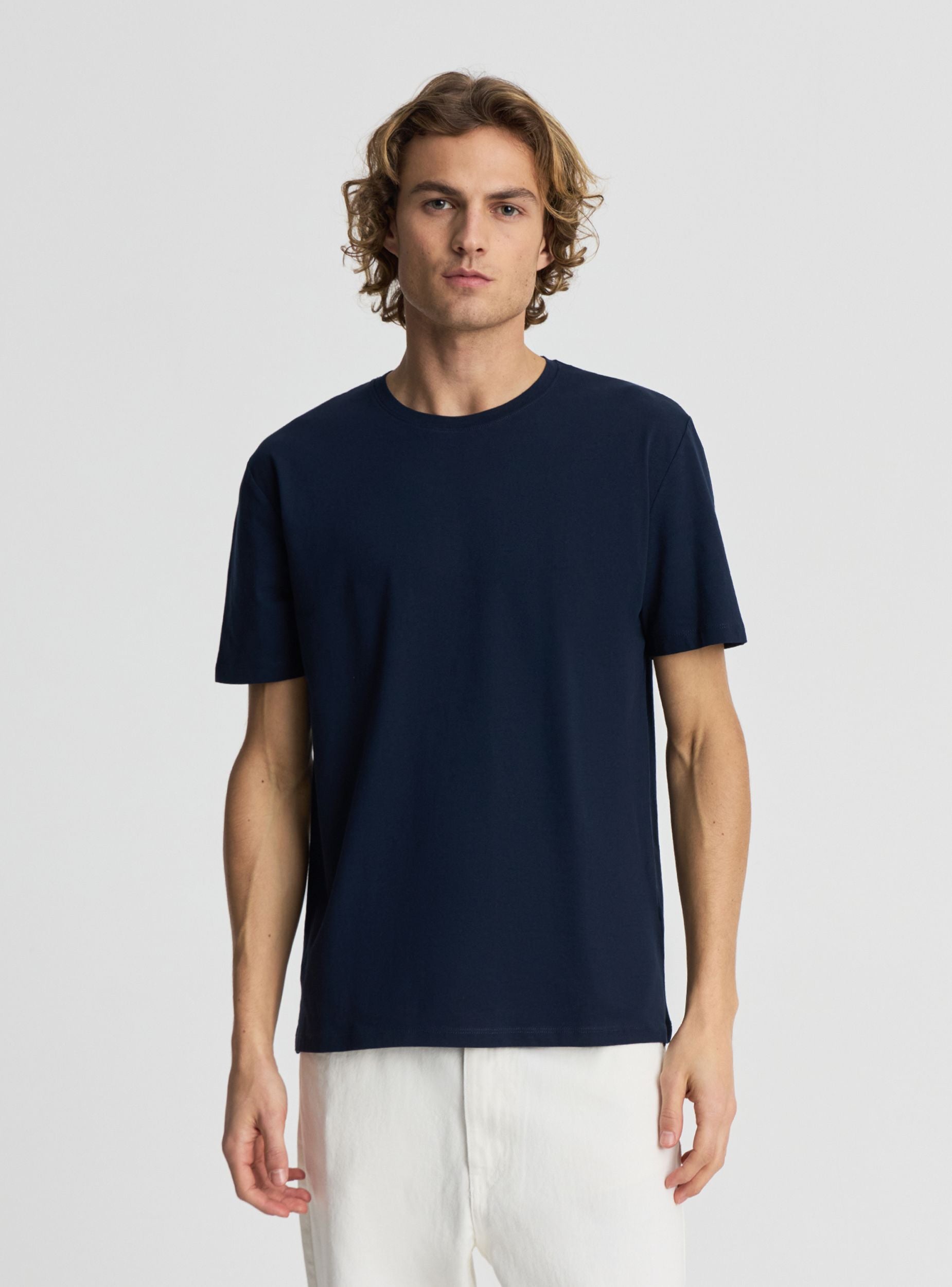 Muška jednobojna majica s okruglim izrezom i kratkim rukavima, idealna za uredan svakodnevni izgled. Slim kroj ističe figuru, a istovremeno pruža udobnost, savršena ispod otvorenih košulja ili uz traperice i tenisice. Jednostavan dizajn s čistim šavovima i minimalističkim završnim detaljima, lako se kombinira za ležerni posao, slobodno vrijeme ili večernje izlaske.