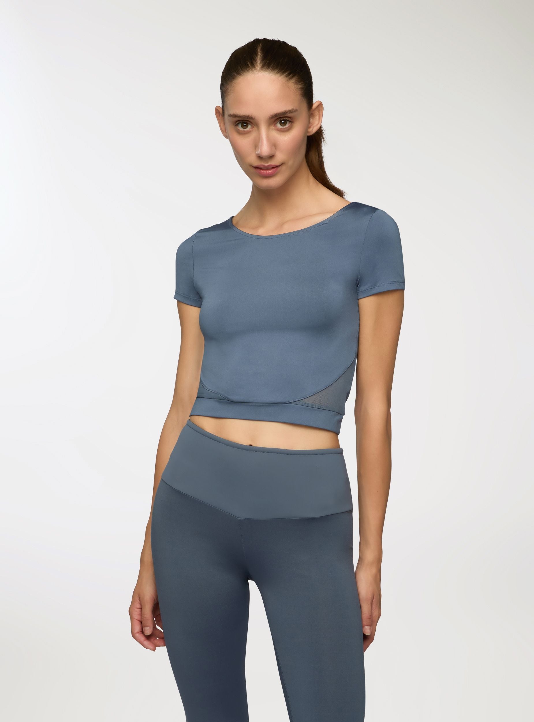 Ženska sportska majica kratkog kroja i uskog fit, idealna za ležerne i dinamične lookove. Minimalistički dizajn u jednobojnoj boji lako se kombinira s tajicama ili sportskim hlačama za svestran stil. Kratki rukavi i široki izrez ističu siluetu, dok detalj od poluprozirnog tila dodaje modernu i ženstvenu notu. Savršena za slobodno vrijeme ili sportske outfite. Active linija.Detalji
