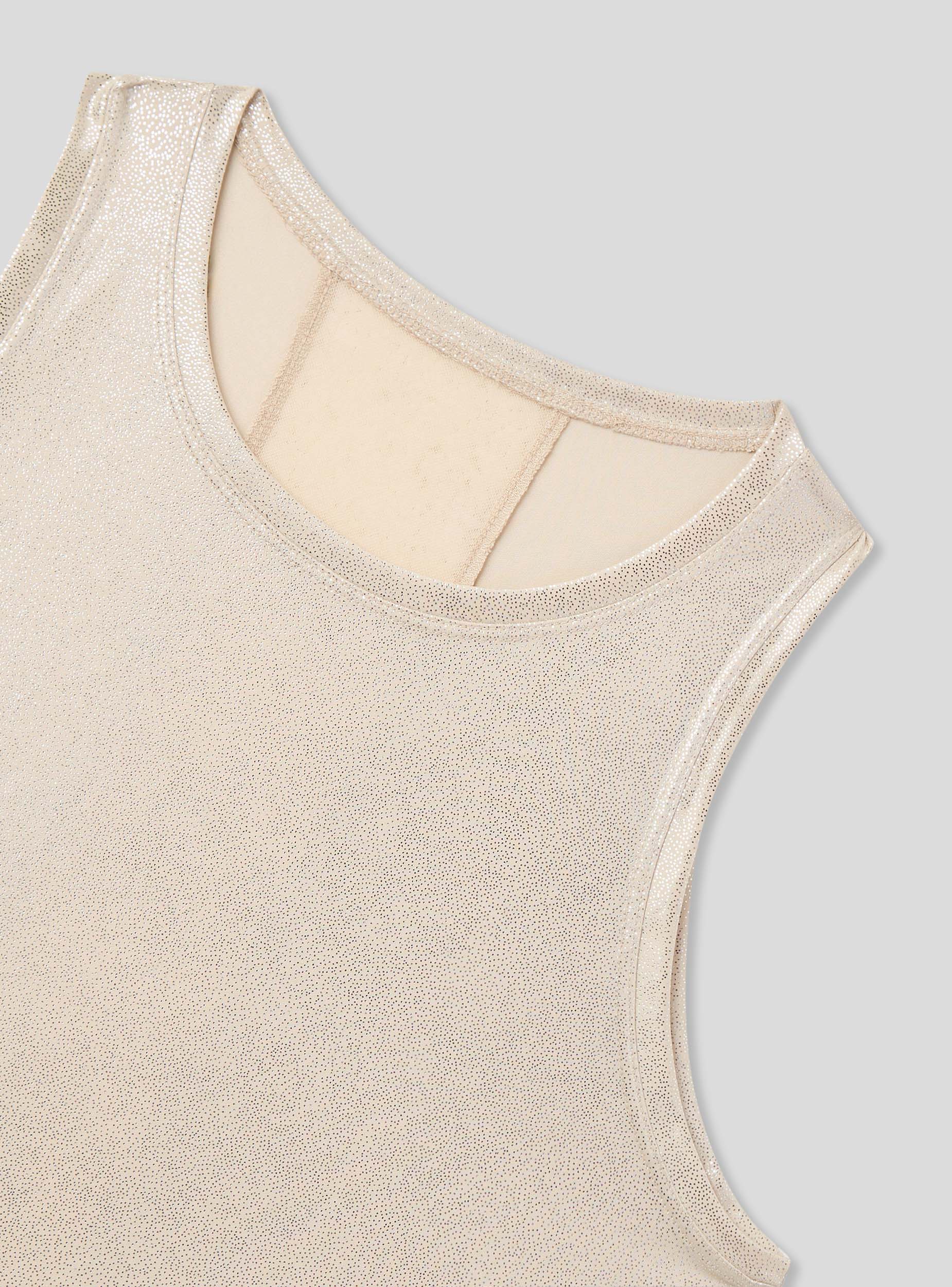Ženska sportska majica savršena za tjelesnu aktivnost ili slobodno vrijeme, karakterizirana modernim i elegantnim dizajnom. Ima sjajnu završnu obradu koja dodaje dašak svjetlosti izgledu, dok široke naramenice pružaju udobnost i praktičnost tijekom kretanja. Oznaka je prozirni tulle umetak na leđima, koji daje dinamičan i prozračan efekt. Jednobojna i svestrana, idealna je za dopunjavanje sportskih ili ležernih outfita. Active linija.Detalji