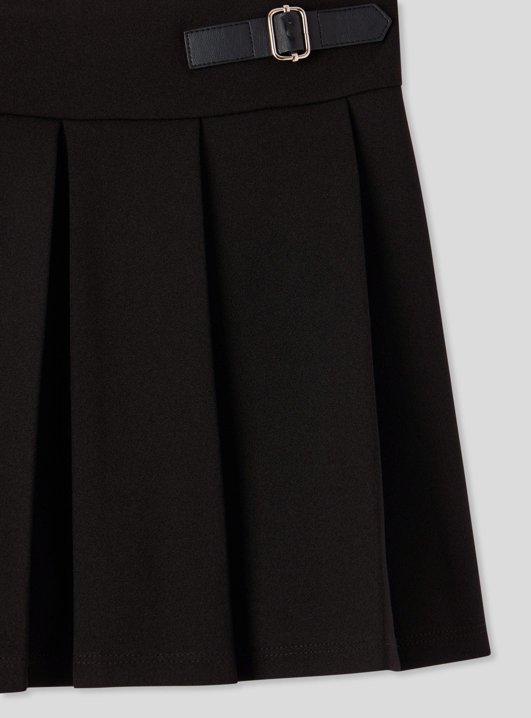 Suknja-hlače za djevojčice s naborima. Udoban struk s malim ukrasnim remenom i kopčom sprijeda. Kratke, jednobojne i širokog kroja, lako se kombiniraju s različitim odjevnim kombinacijama. Savršene s košuljama ili majicama za casual chic izgled.Detalji