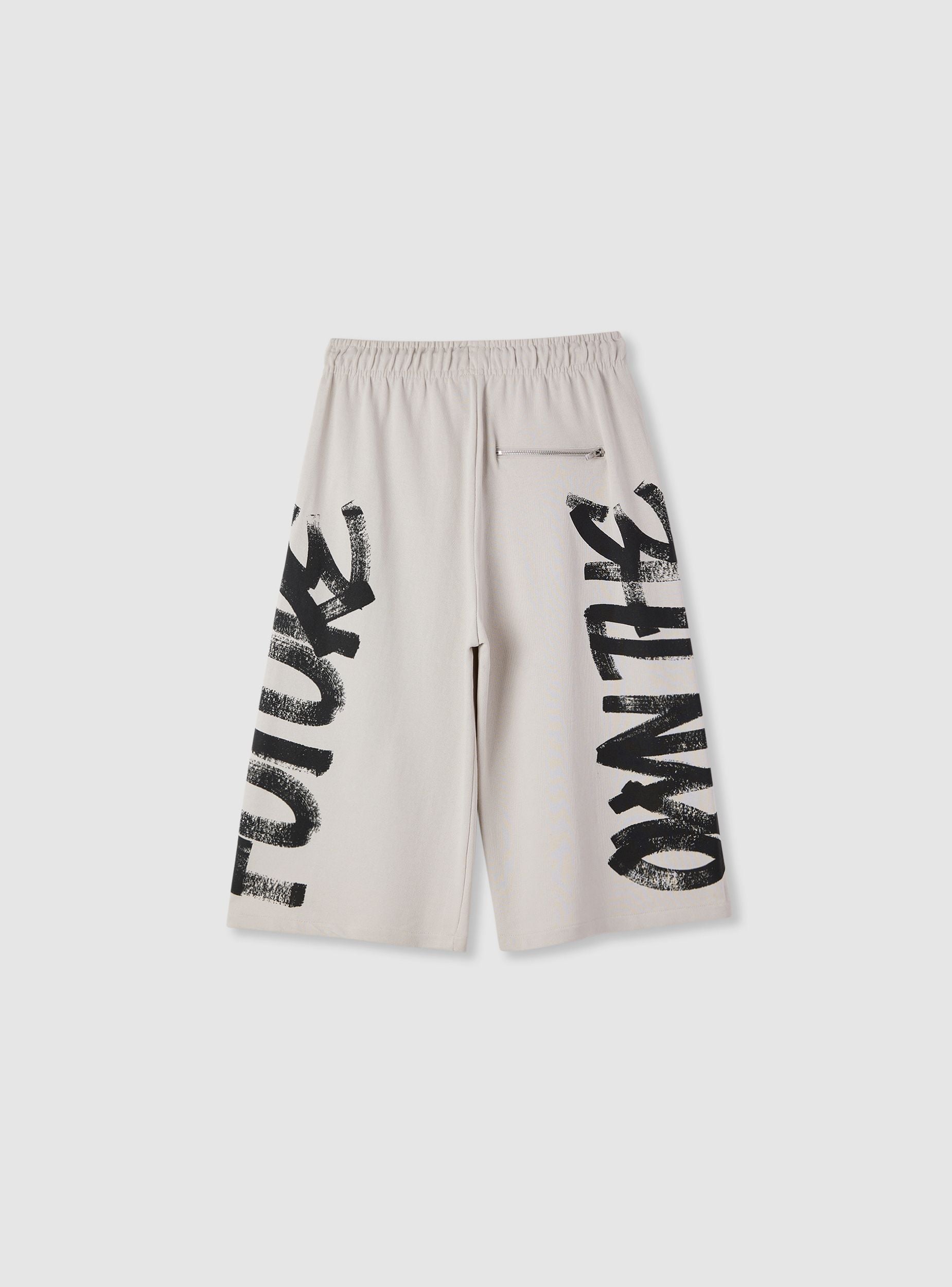 Muške sportske kratke hlače od laganog materijala. Urban stil s printom natpisa u efektu grafita na nogavicama. Super baggy model s elastičnim pojasom i podesivim vezicama za dinamičnu udobnost. Bočni džepovi sa zatvaračem i stražnji džep sa zatvaračem za sigurno držanje malih predmeta. Savršene uz duksericu i tenisice za slobodno vrijeme.Detalji