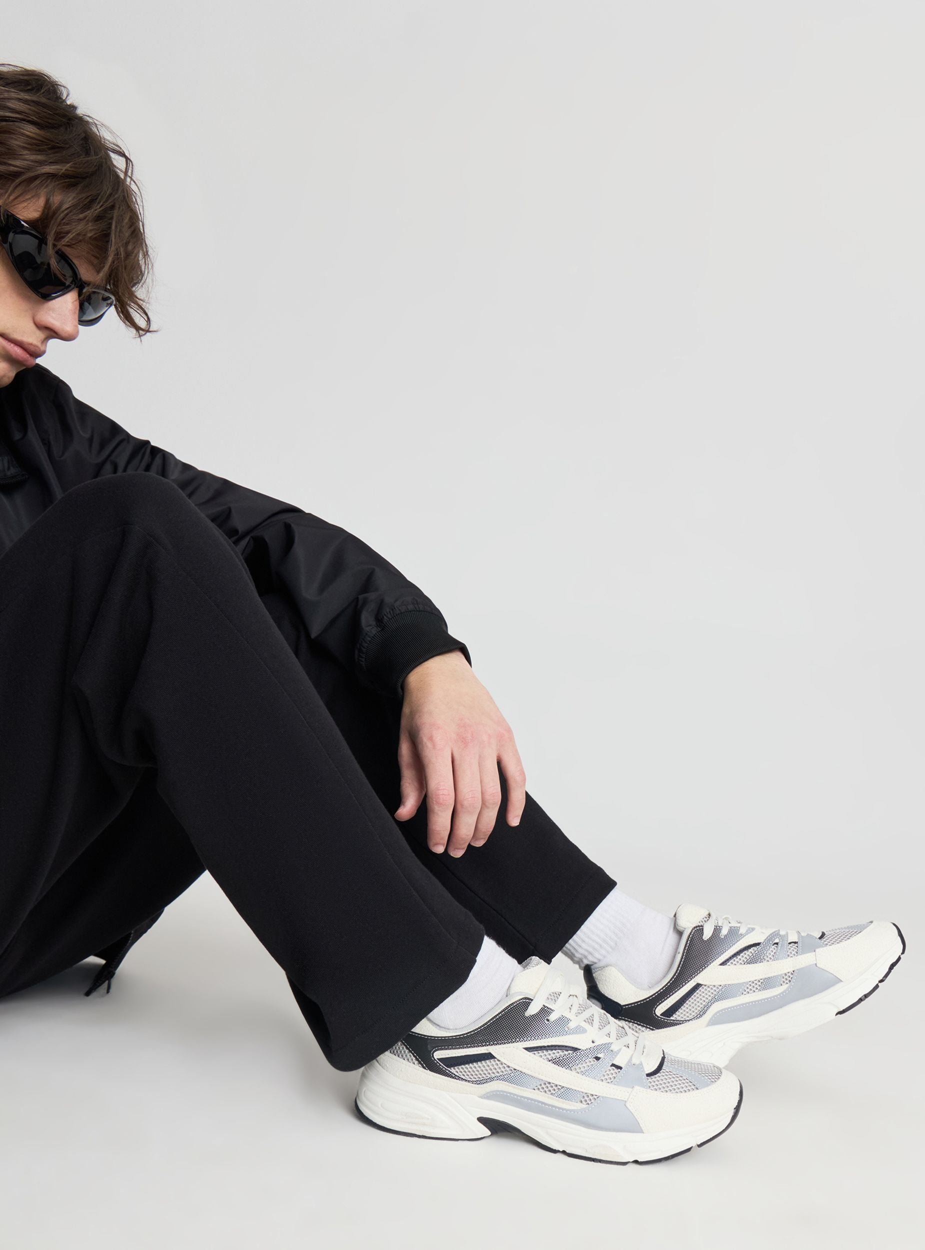 Muške cipele tehničkog dizajna, idealne za slobodno vrijeme i za upotpunjavanje sportskih outfita. Gornjište s mrežastim panelima i strukturiranim preklopima, zaobljeni vrh i vezice za podesivo pristajanje. Debeli potplat. Savršene uz traperice, cargo hlače ili trenirke, dodaju dinamičan štih svakom izgledu.Detalji