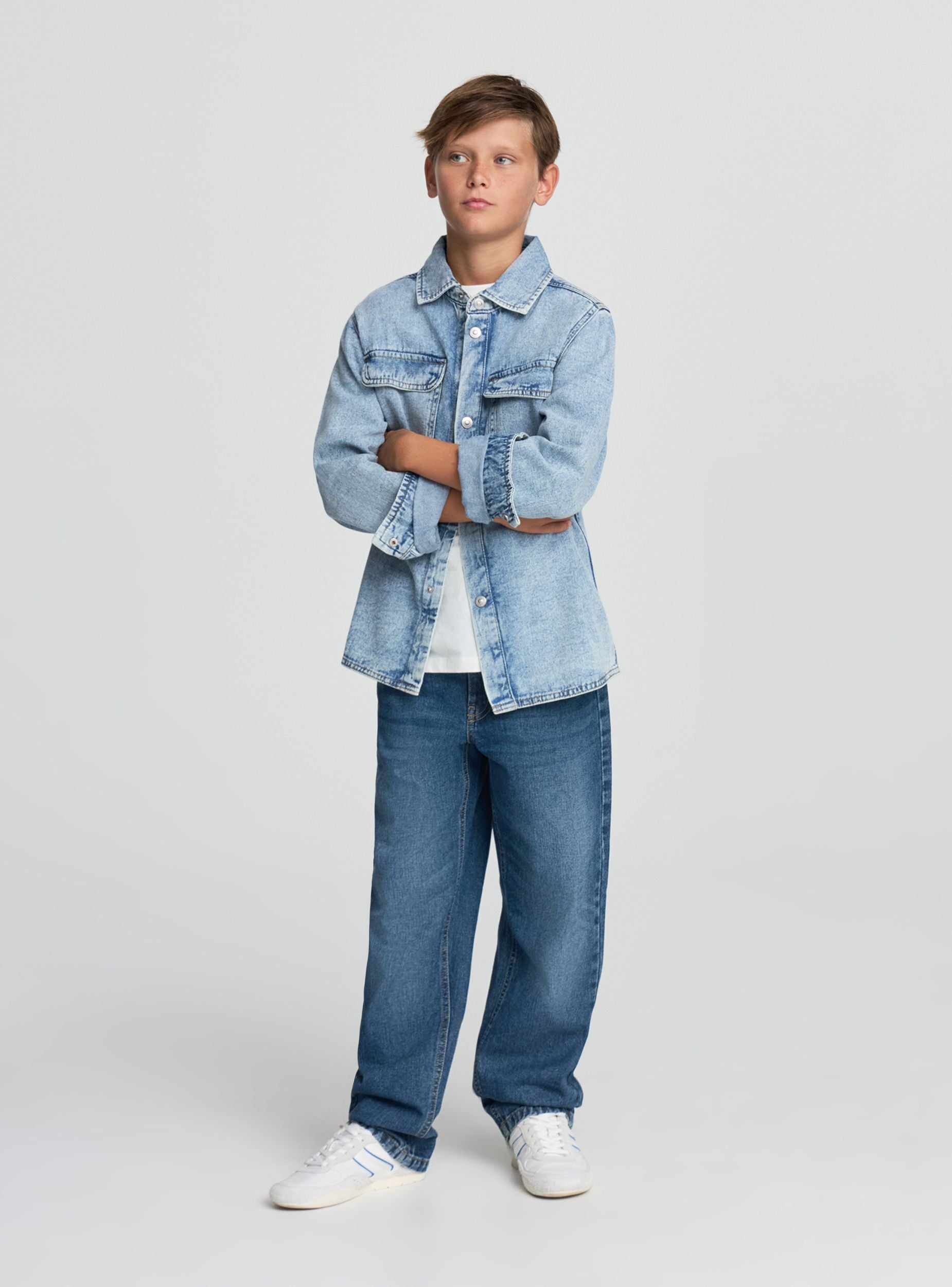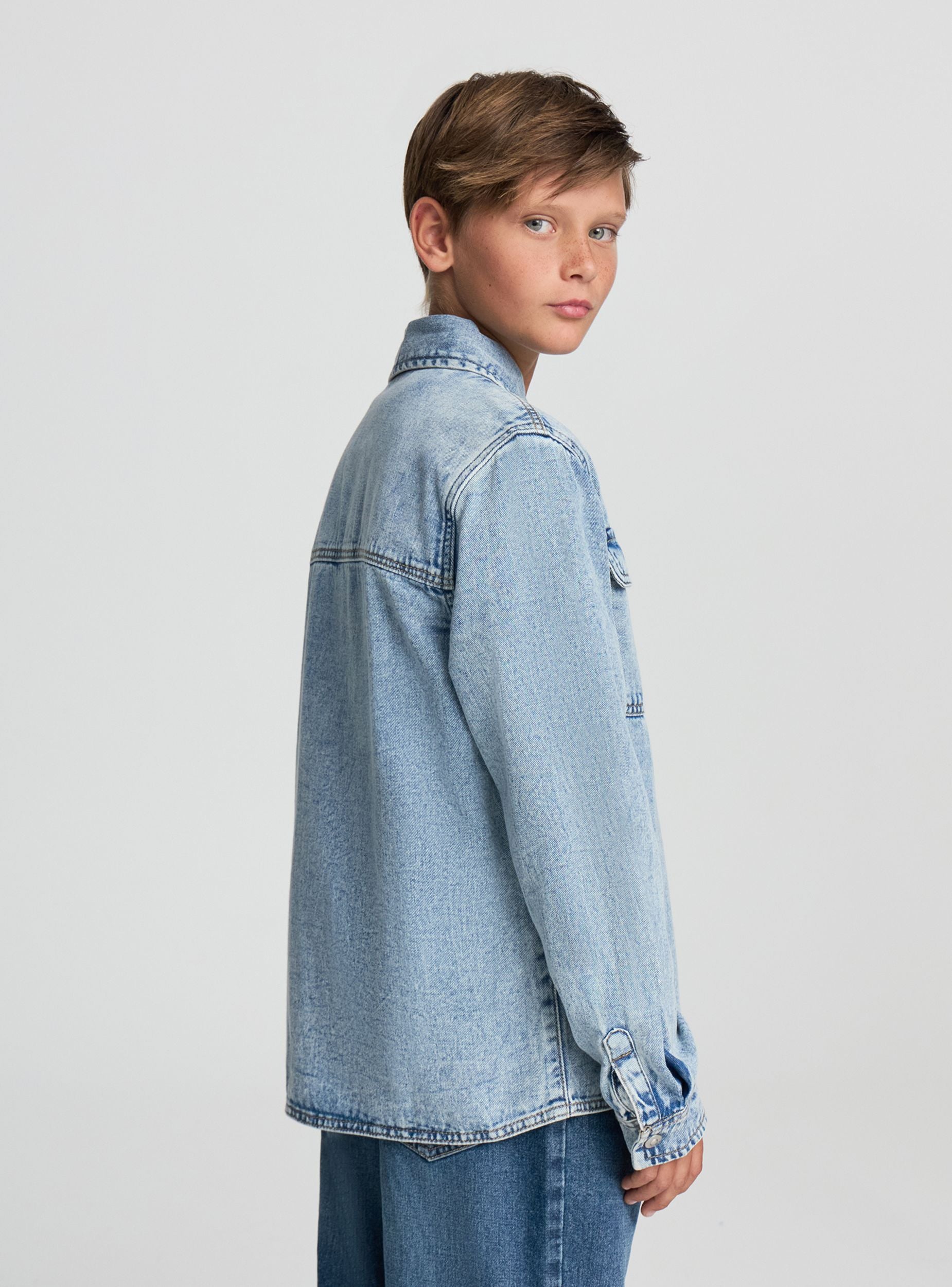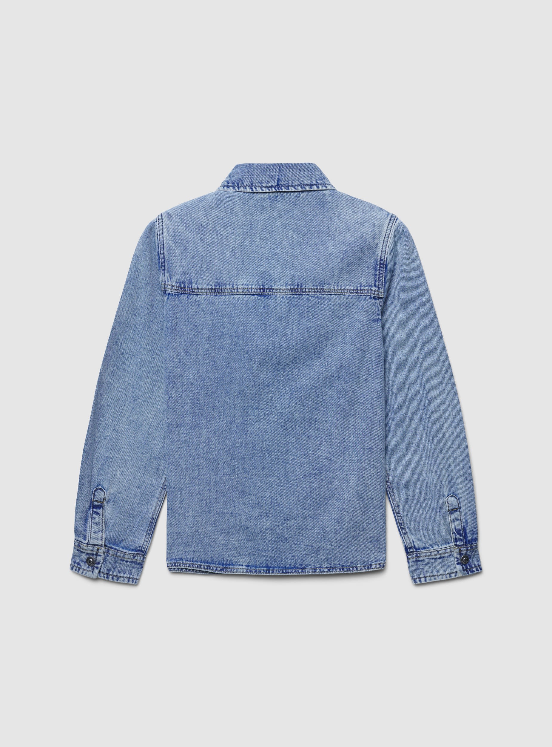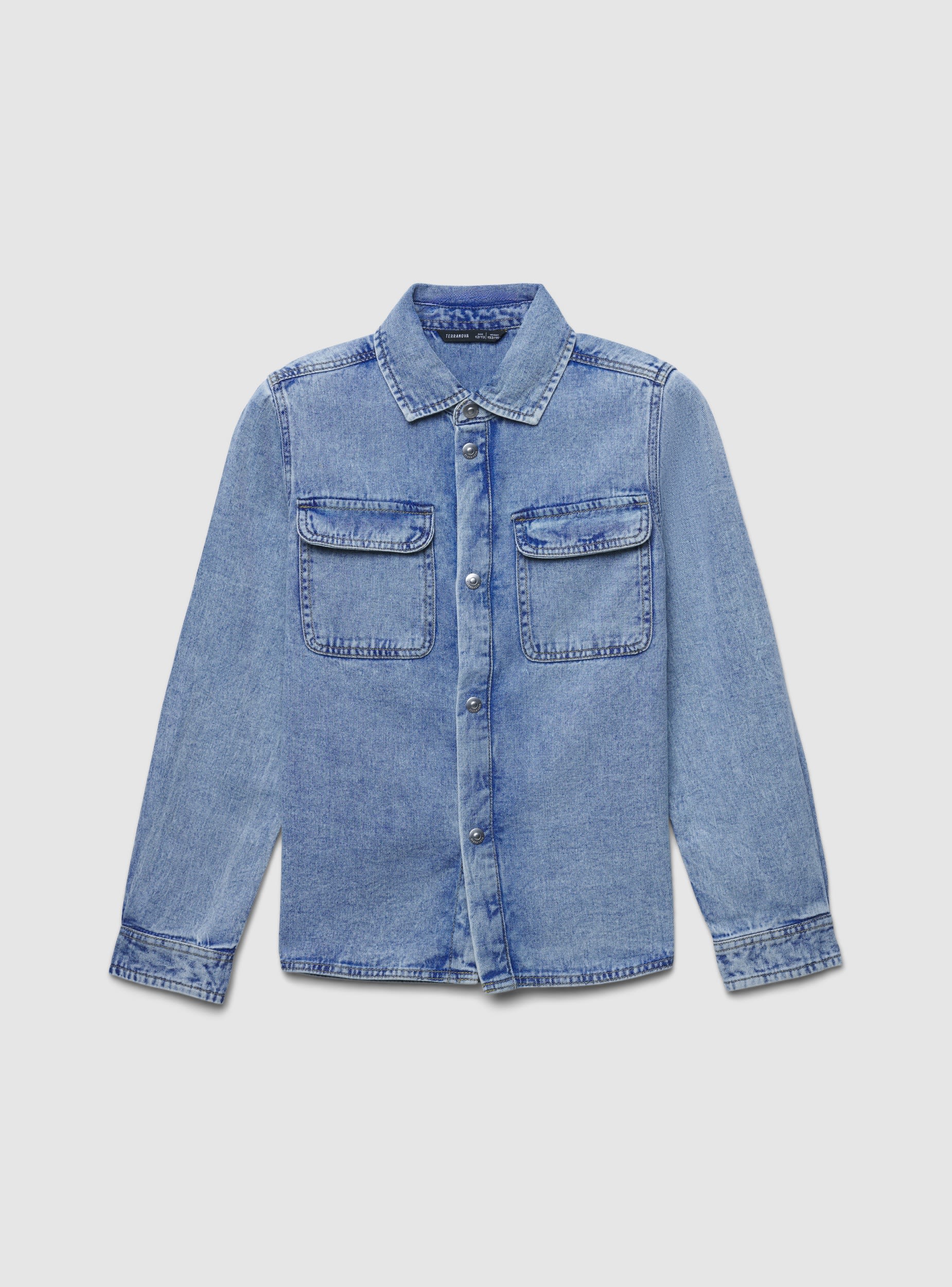 Dječja traper košulja s dugim rukavima, savršena za ležeran i svestran izgled. Ima jednobojni dizajn s klasičnim ovratnikom i prednjim zatvaračem na kopče. Opremljena je praktičnim džepovima na prsima s preklopom, idealna za dodavanje stila i funkcionalnosti. Lako se kombinira s trapericama ili hlačama za odjevnu kombinaciju prikladnu za različite prilike.Detalji
