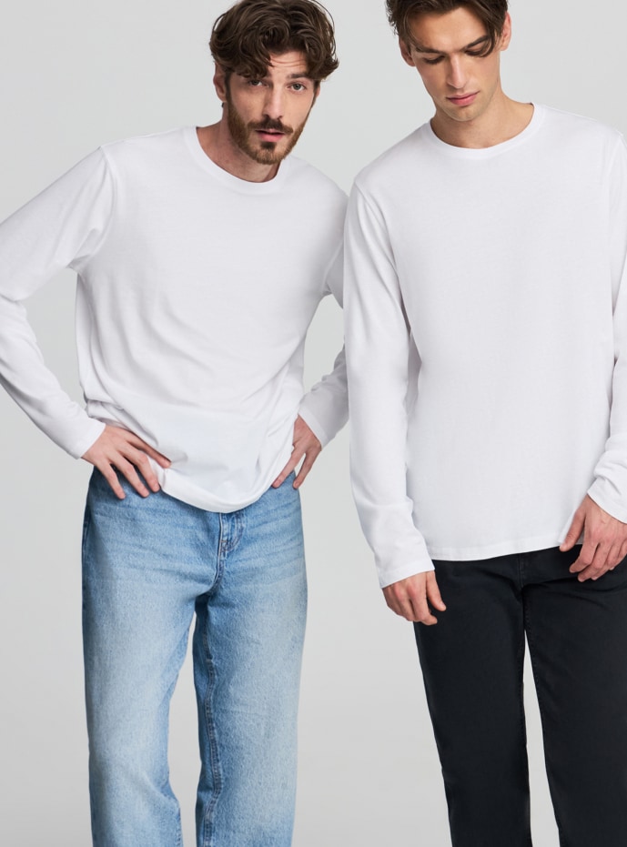 Pakiranje se sastoji od dvije muške majice dugih rukava, idealne za ležeran i svestran izgled. Savršene za nošenje u različitim prilikama, ove majice lako se kombiniraju s trapericama ili sportskim hlačama. Udoban kroj i jednobojni dizajn čine ih osnovnim komadom u muškom ormaru. Idealne za prijelazno razdoblje ili za nošenje ispod jakne.