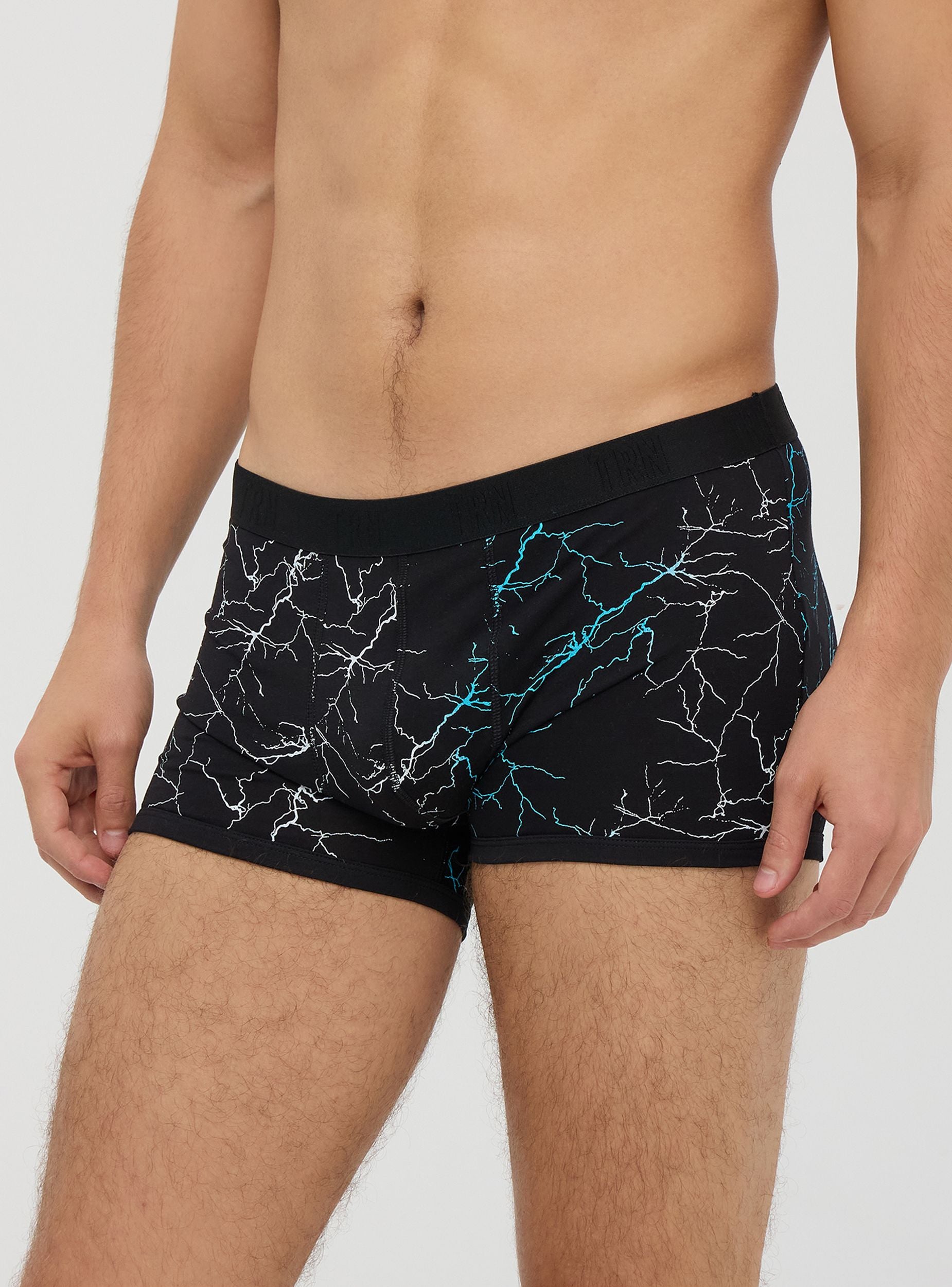 Boxer da uomo, a gamba corta, con effetto marmorizzato, realizzati in tessuto elasticizzato per garantire il massimo comfort e vestibilità. Il tessuto in cotone assicura morbidezza e una buona traspirabilità, perfetti per l'uso quotidiano. Presentano un elastico in vita decorato con il logo "TRN". Ideali da indossare sotto qualsiasi tipo di abbigliamento, offrono sostegno e comfort per tutta la giornata. Il doppio strato sulla parte frontale aggiunge ulteriore protezione e supporto.Dettagli