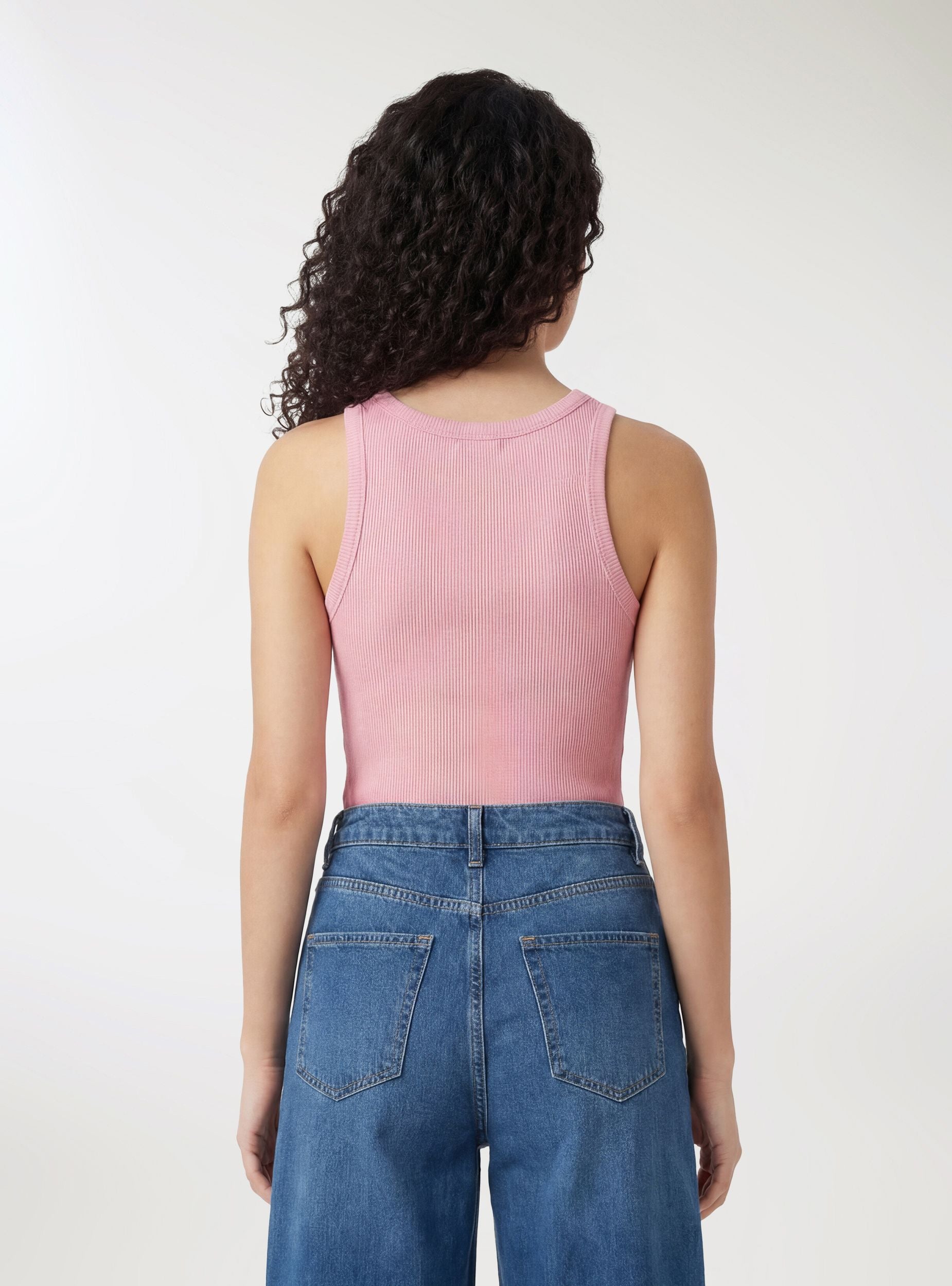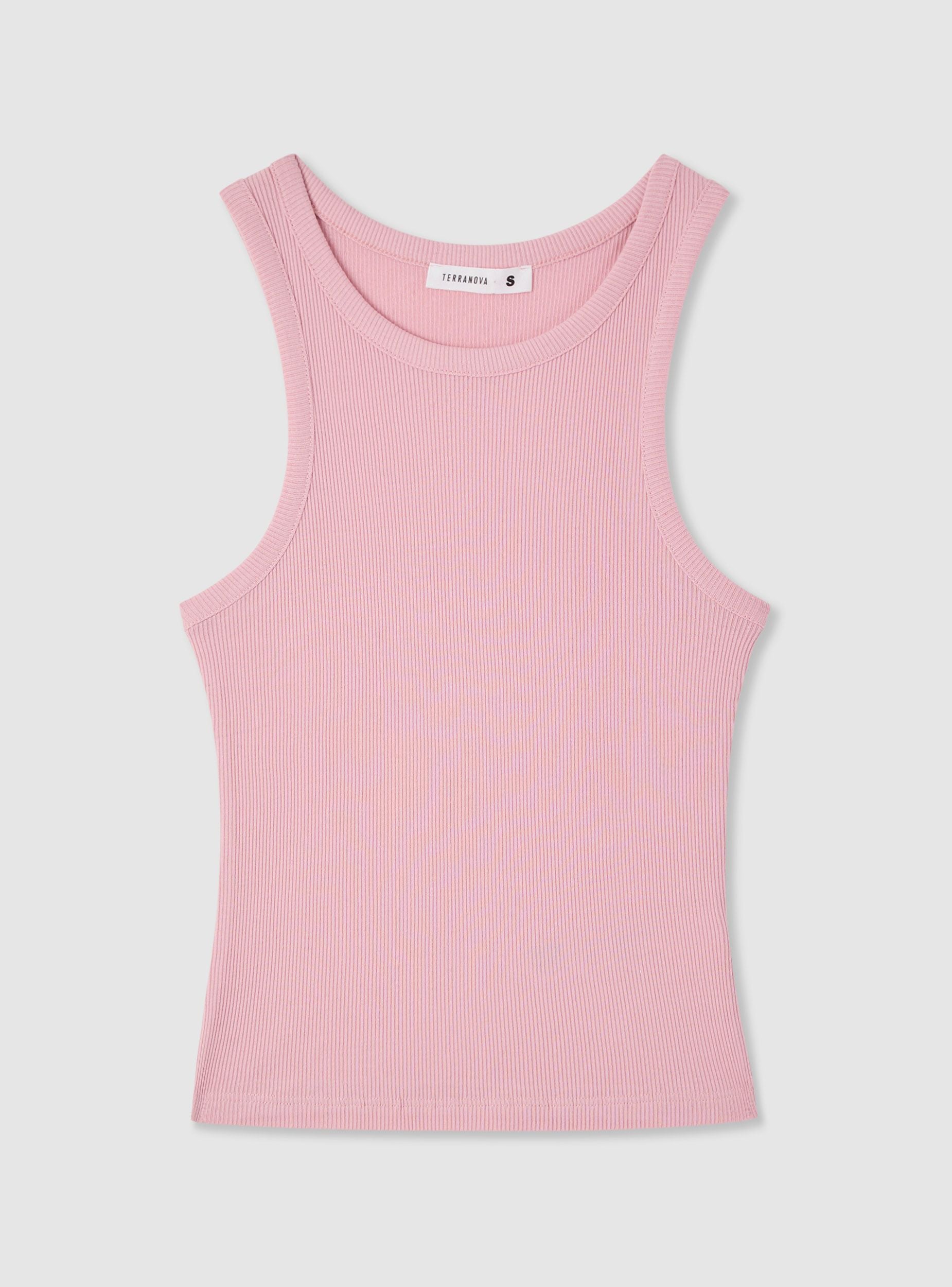 Canotta da donna a tinta unita con lavorazione a coste e scollo rotondo. Il taglio vogatore valorizza spalle e schiena, mentre la linea avvolgente lo rende ideale sia come capo base sotto blazer e camicie, sia da indossare da solo con jeans, pantaloni o gonne. Design essenziale, pensato per look quotidiani e outfit easy dal giorno alla sera.Dettagli