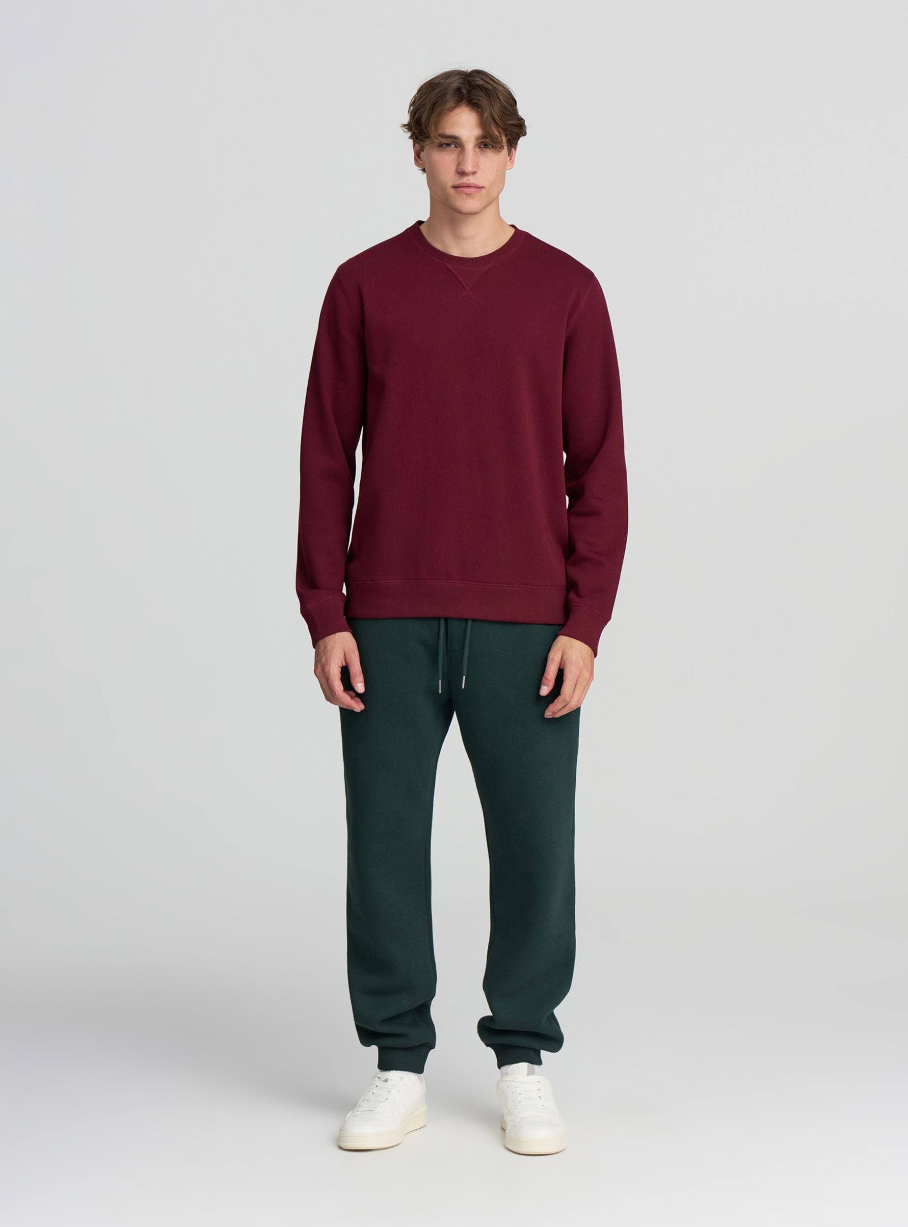 Felpa pesante da uomo in tinta unita, perfetta per affrontare la stagione fredda con stile e comfort. Design basic con maniche lunghe, girocollo e senza cappuccio né zip, ideale per chi ama un look pulito e versatile. Realizzata in tessuto felpato è un capo comodo da indossare tutti i giorni, da solo o sotto giacche e piumini. Perfetta per outfit casual e rilassati.Dettagli