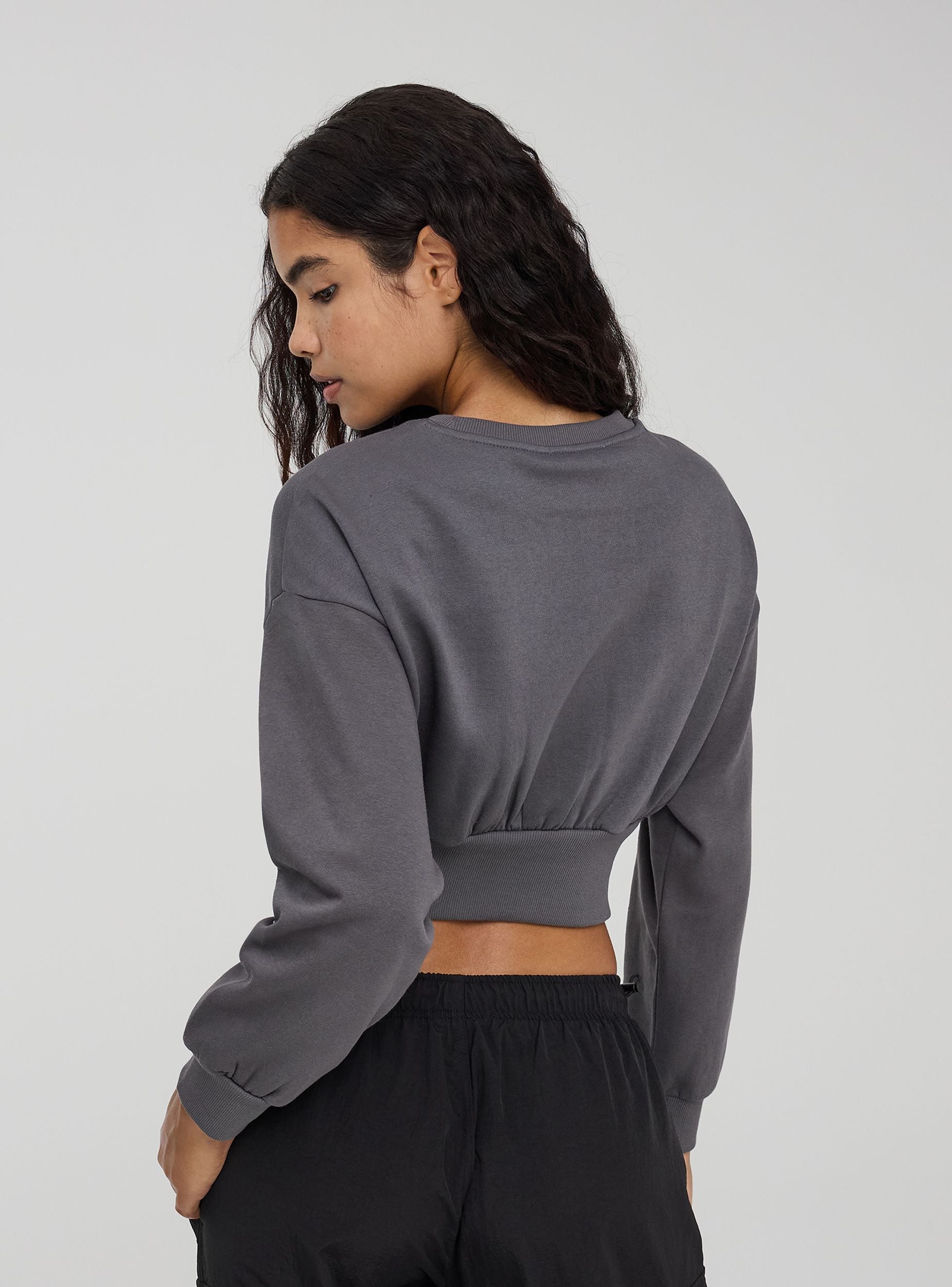 Felpa pesante crop con stampa bocca - Grigio scuro