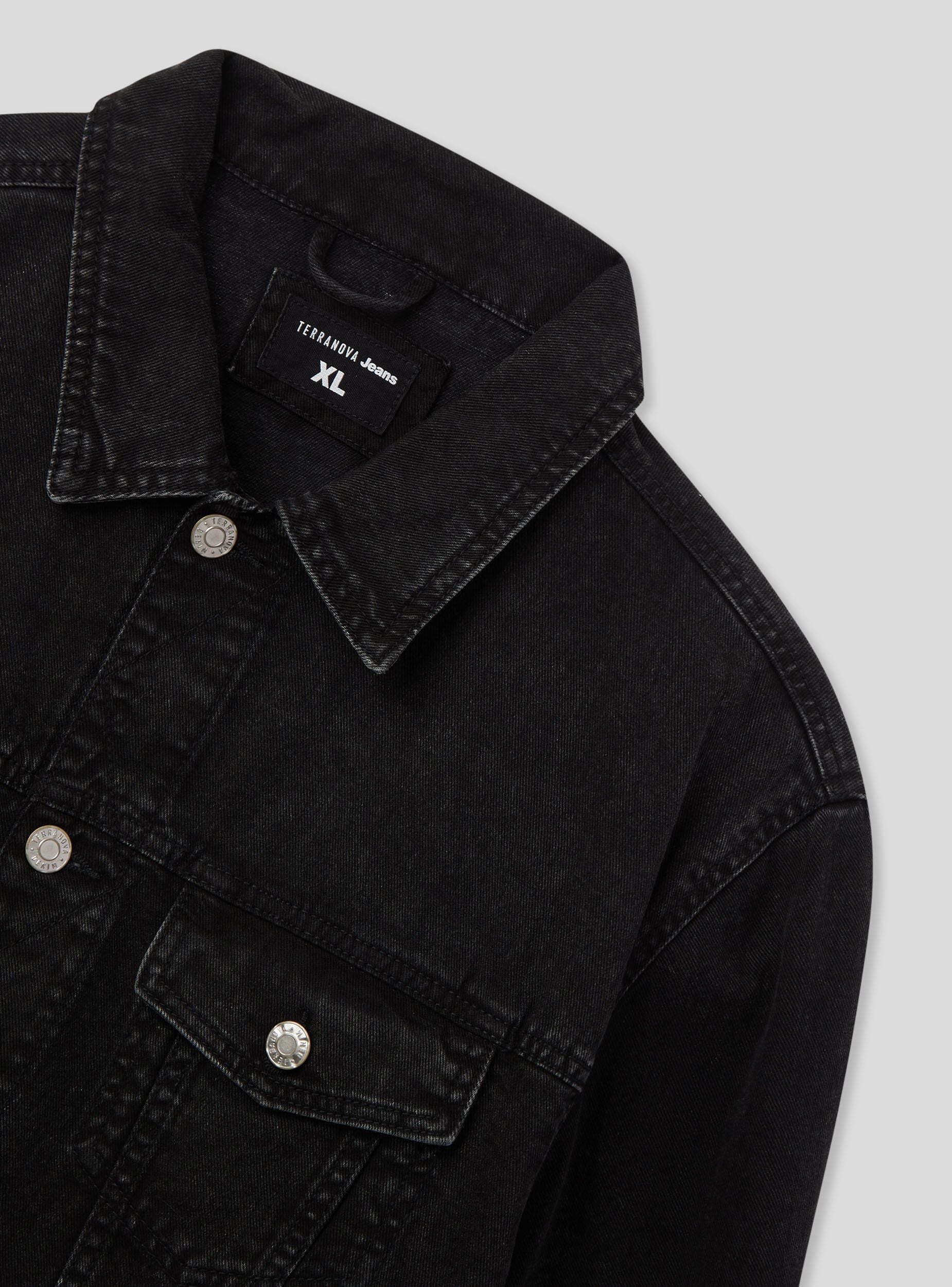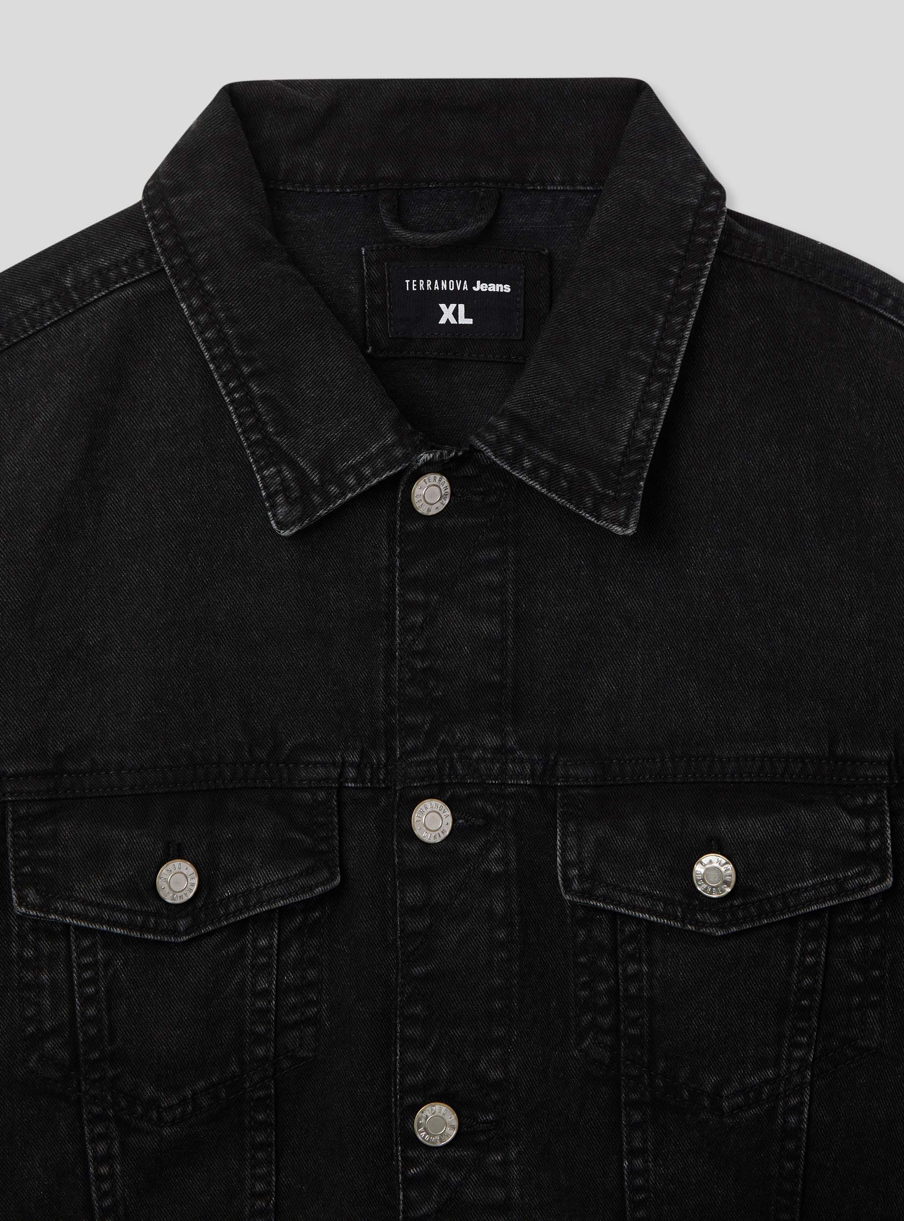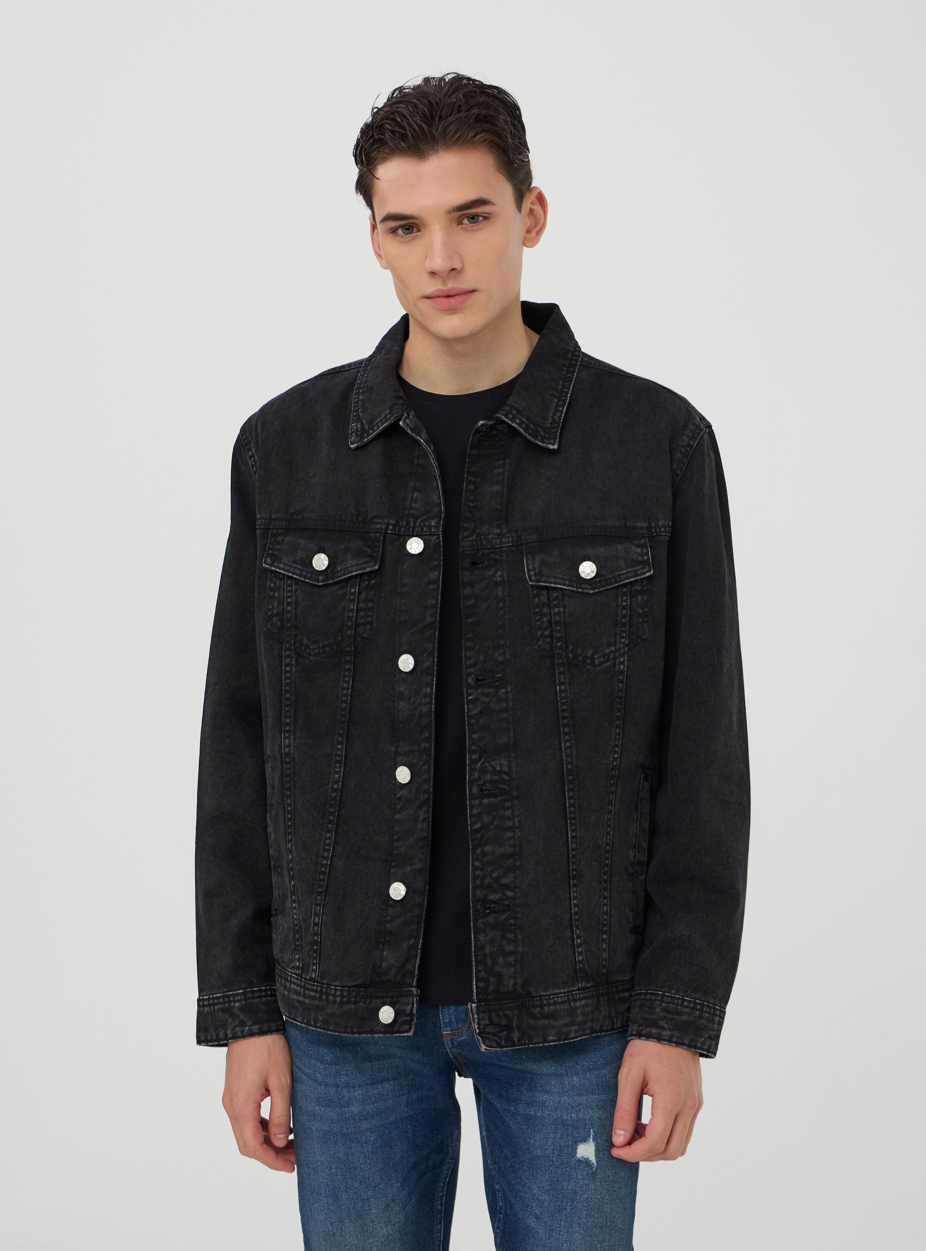 Giubbino da uomo in denim nero, perfetto per un look urbano e di tendenza. Caratterizzato da una tinta unita, maniche lunghe e bottoni, presenta tasche sul petto e laterali per praticità. Ideale per il tempo libero, si abbina facilmente a jeans chiari o pantaloni cargo, creando outfit versatili e moderni per ogni occasione casual.