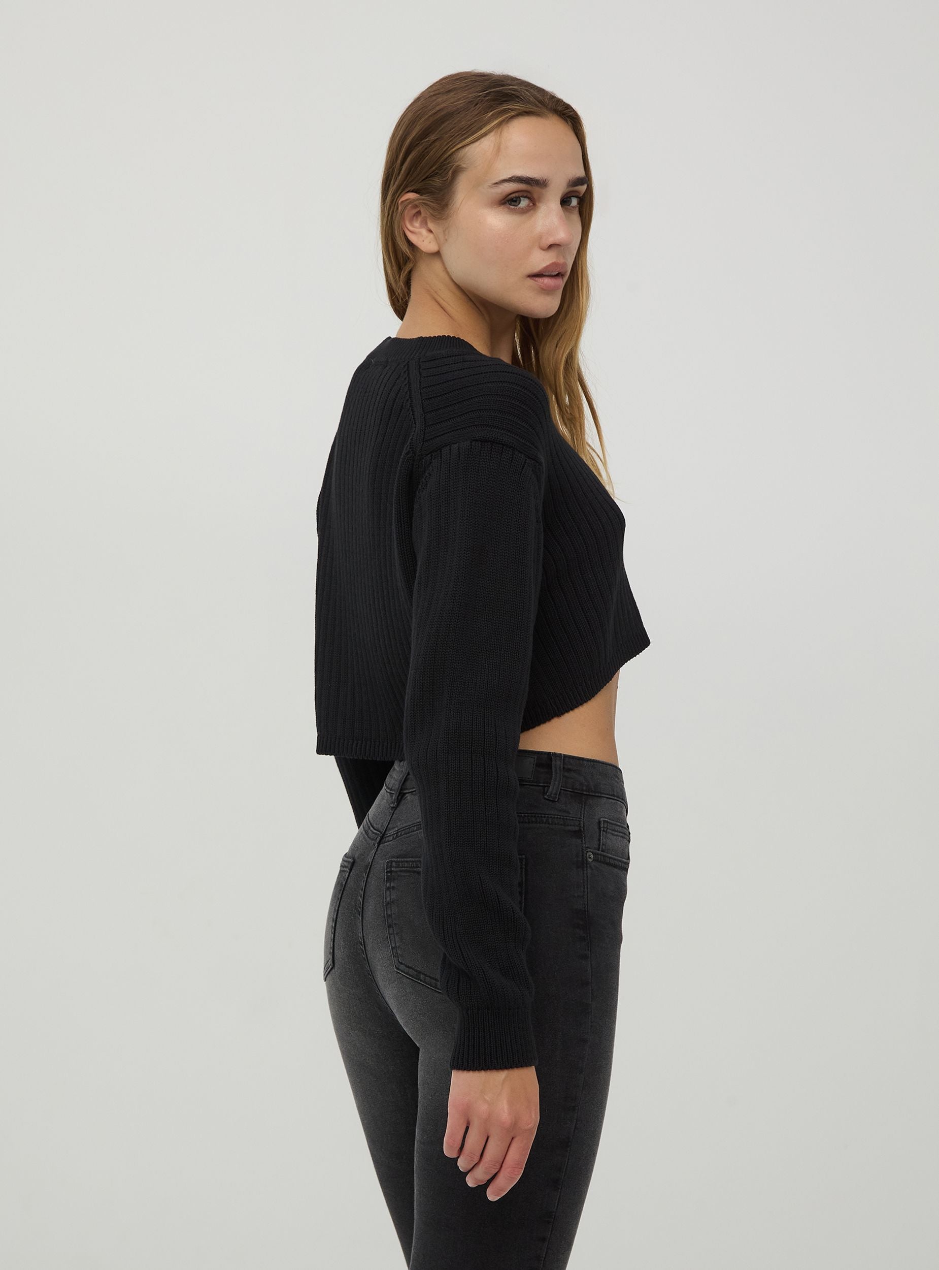 Maglia da donna a coste, caratterizzata da un taglio crop per un look moderno e alla moda. Il modello presenta un girocollo e maniche lunghe, offrendo un tocco casual e confortevole, perfetto per completare vari outfit, sia con pantaloni a vita alta che con gonne. La sua vestibilità crop dona un effetto trendy e contemporaneo, ideale per chi cerca un capo versatile da abbinare in diverse occasioni.Dettagli