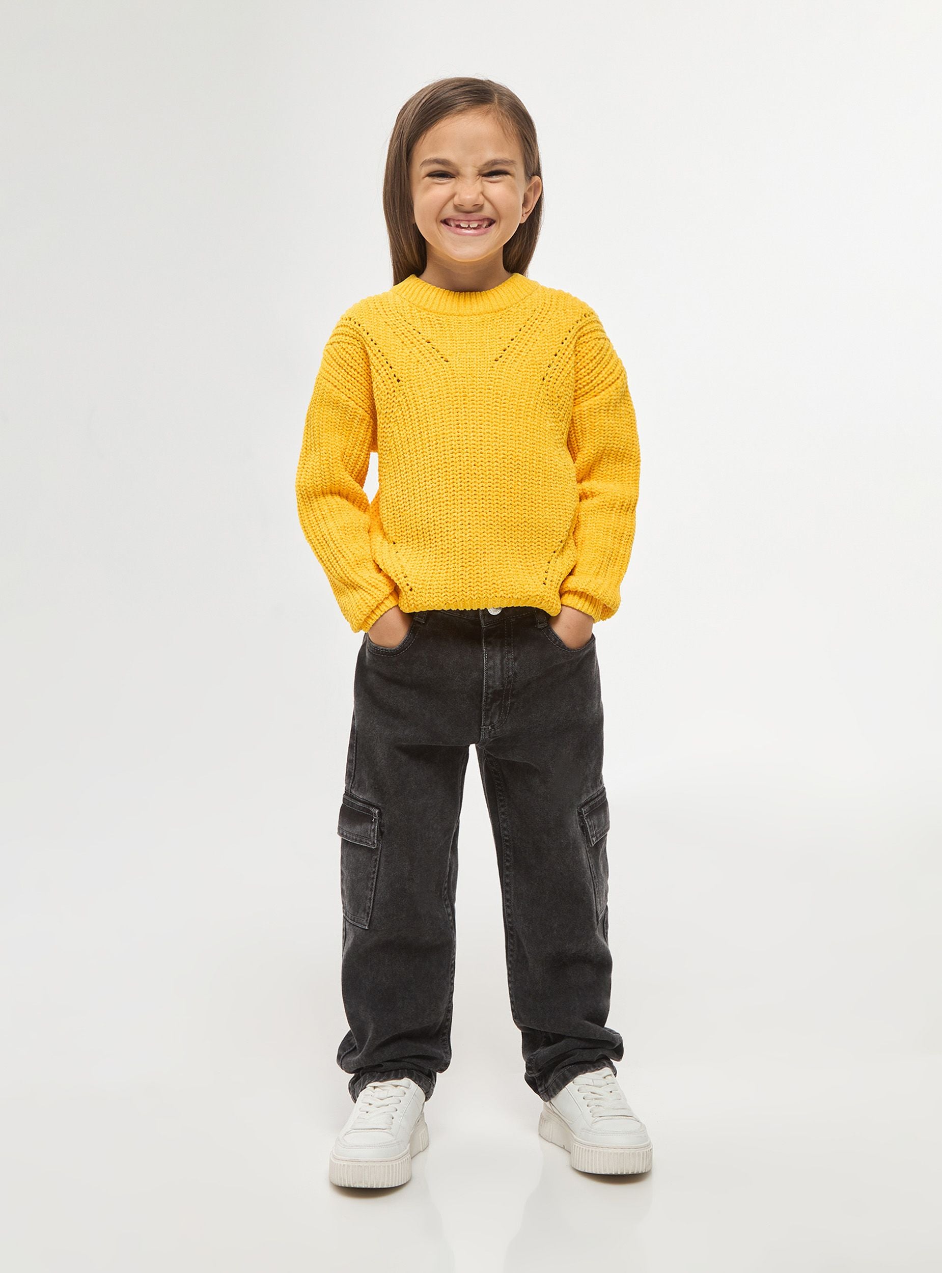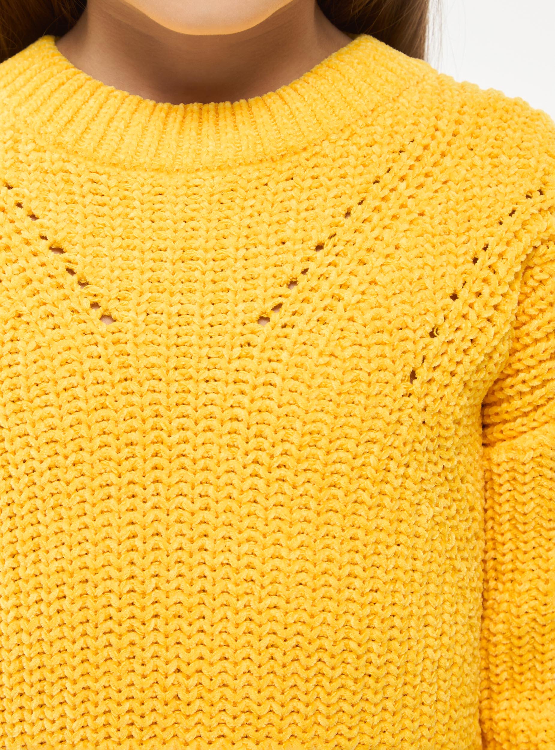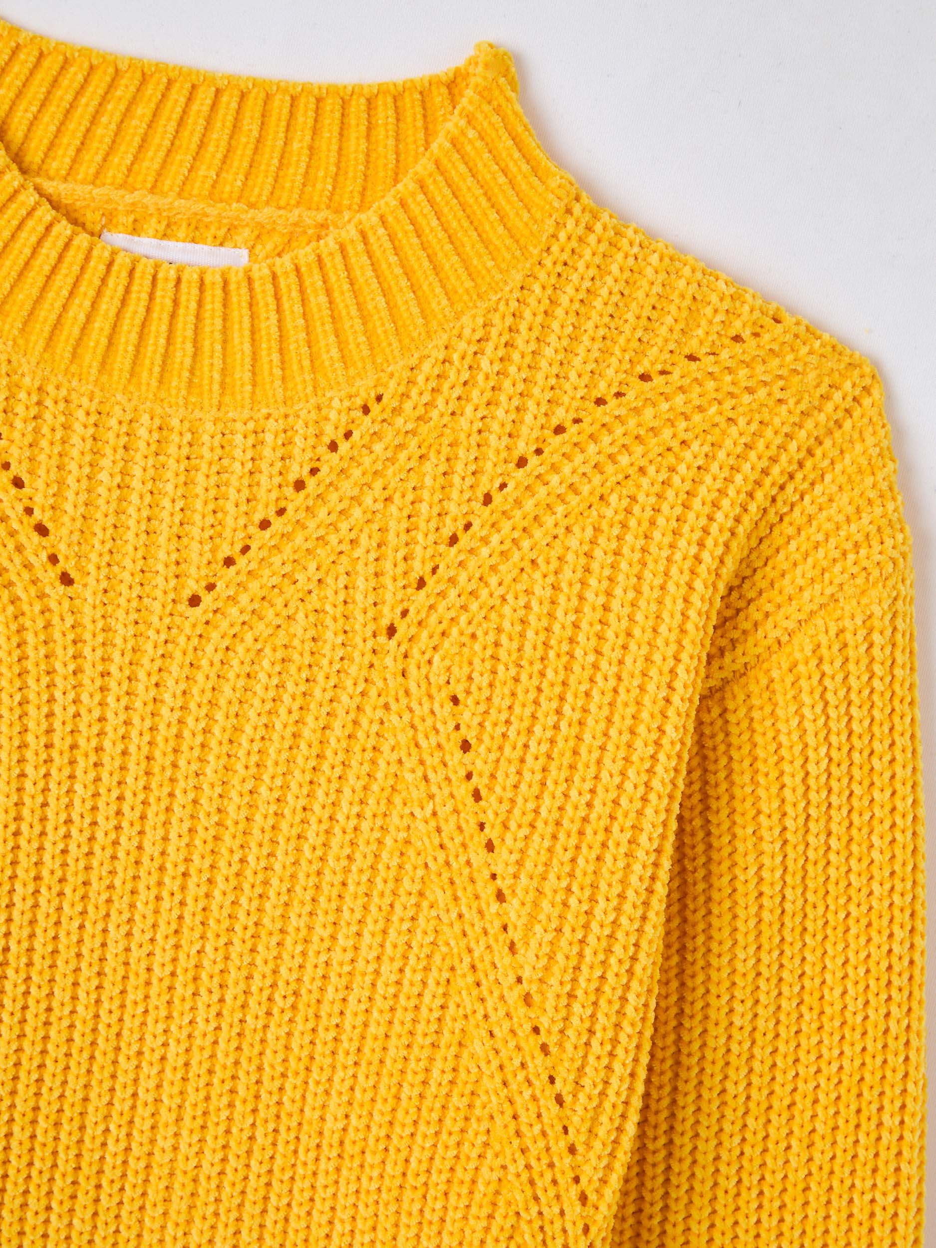 Maglia da bambina in ciniglia a tinta unita, caratterizzata da una lavorazione con finiture a costine e uno scollo rotondo. Il design è semplice e confortevole, con una vestibilità regular che permette libertà di movimento. Le maniche lunghe offrono calore e protezione, rendendo questa maglia ideale per le giornate più fresche. Il look essenziale e versatile la rende adatta a diversi abbinamenti, perfetta per un utilizzo quotidiano con stile.Dettagli