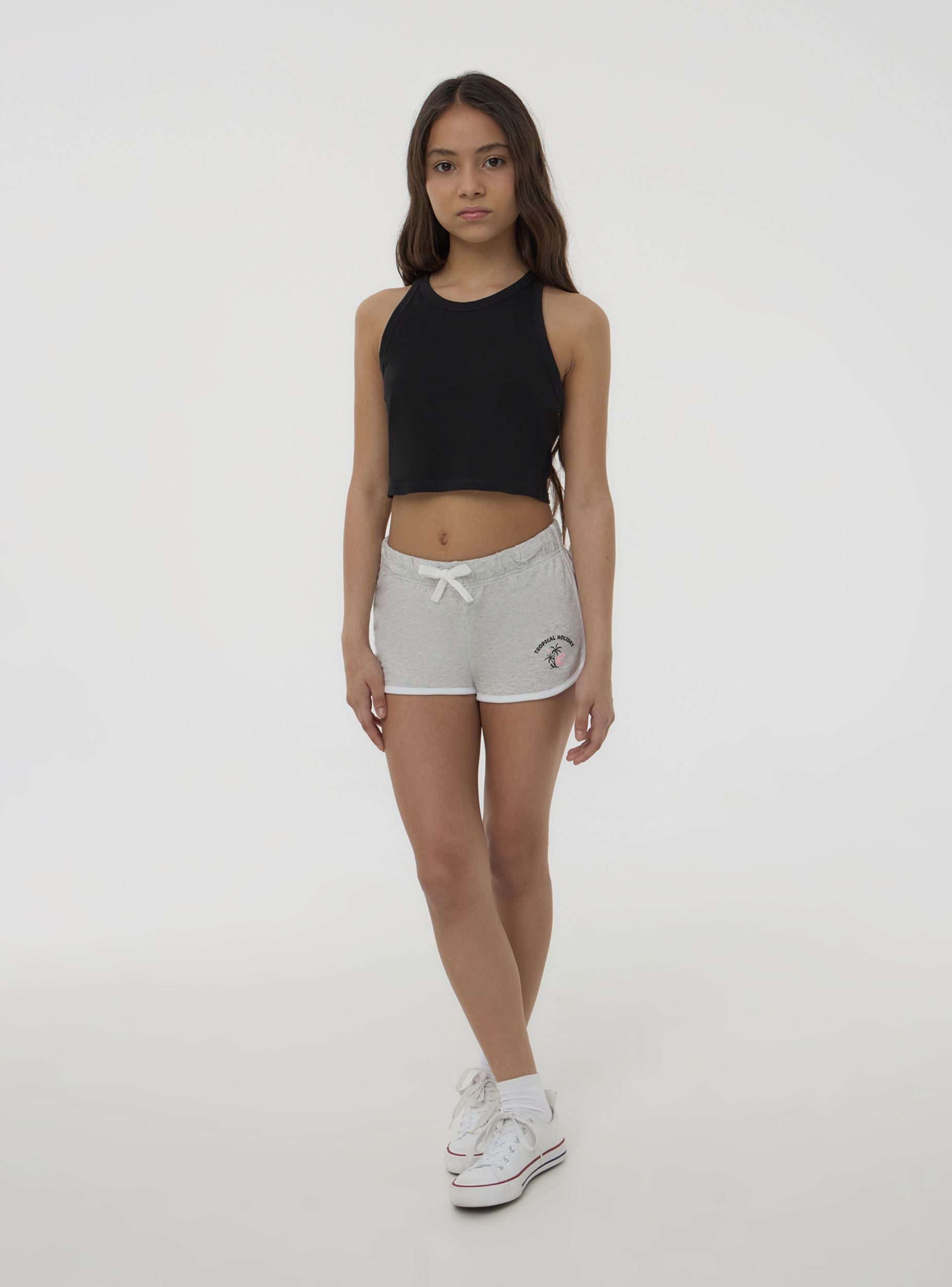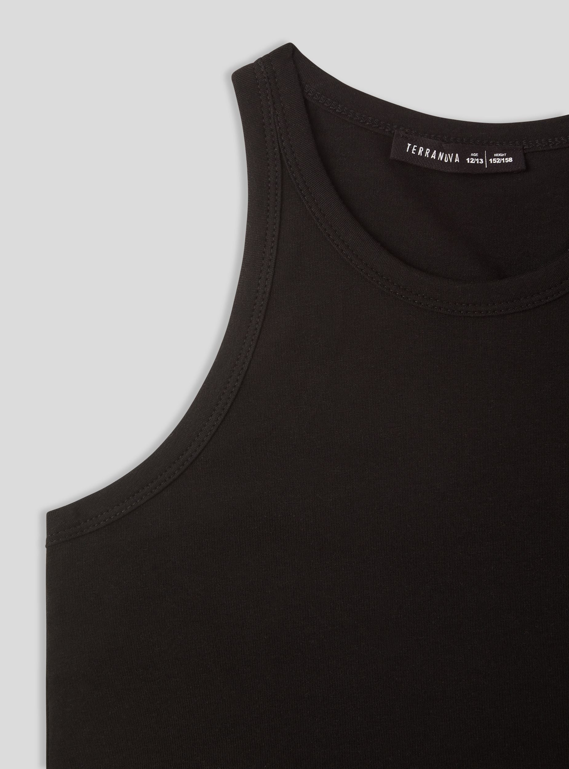 Confezione composta da 2 top da bambina dal design moderno e versatile. Entrambi presentano una raffinata tinta unita e uno scollo americano che dona un tocco sportivo e contemporaneo. Il taglio crop li rende ideali per creare outfit estivi comodi e alla moda, perfetti per abbinamenti freschi e dinamici. Pensati per accompagnare le giornate all’insegna dello stile e del divertimento.Dettagli