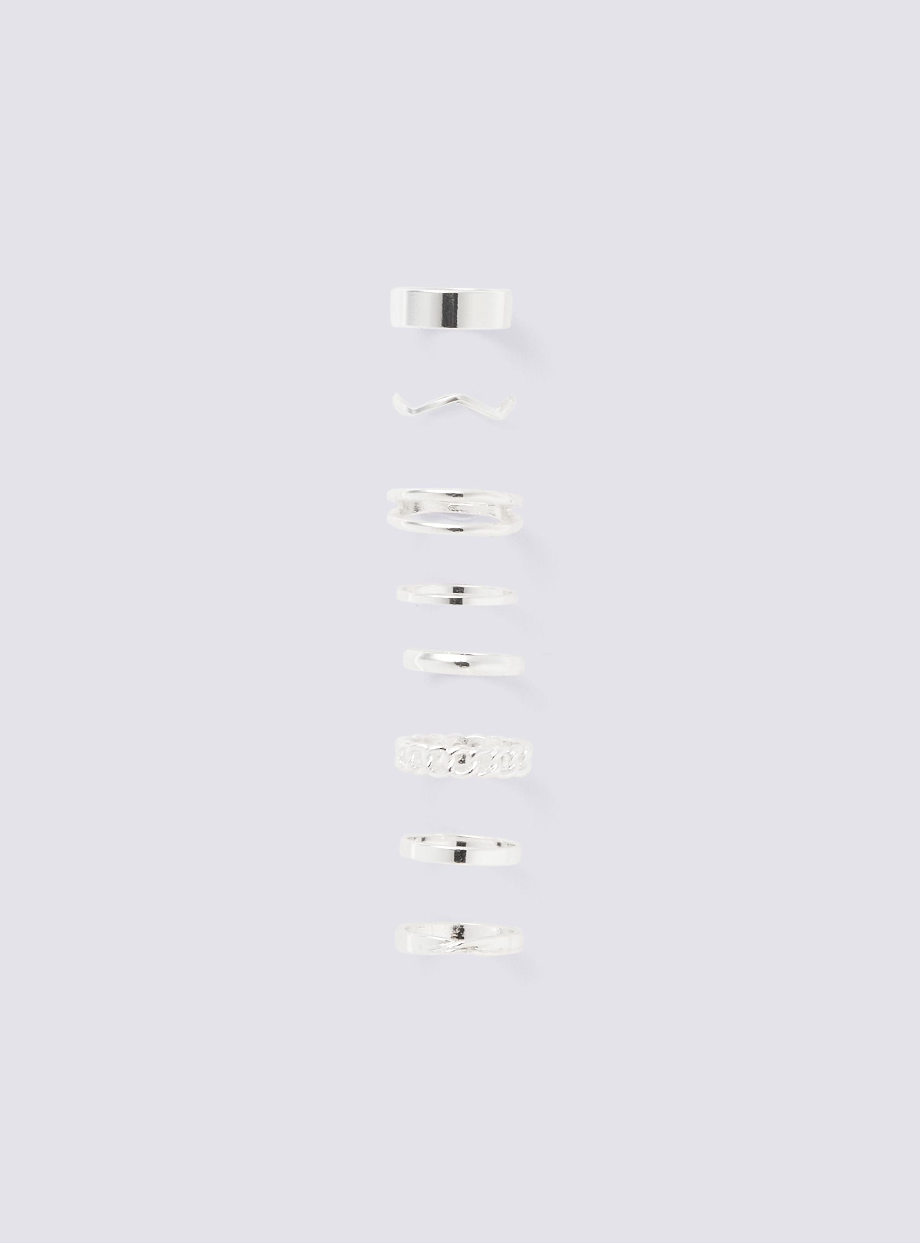 Pack 8 anelli fedine varie forme - Argento