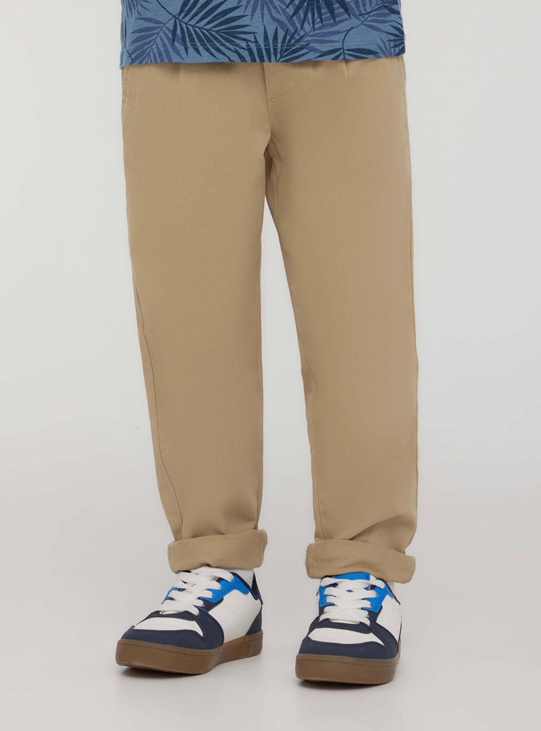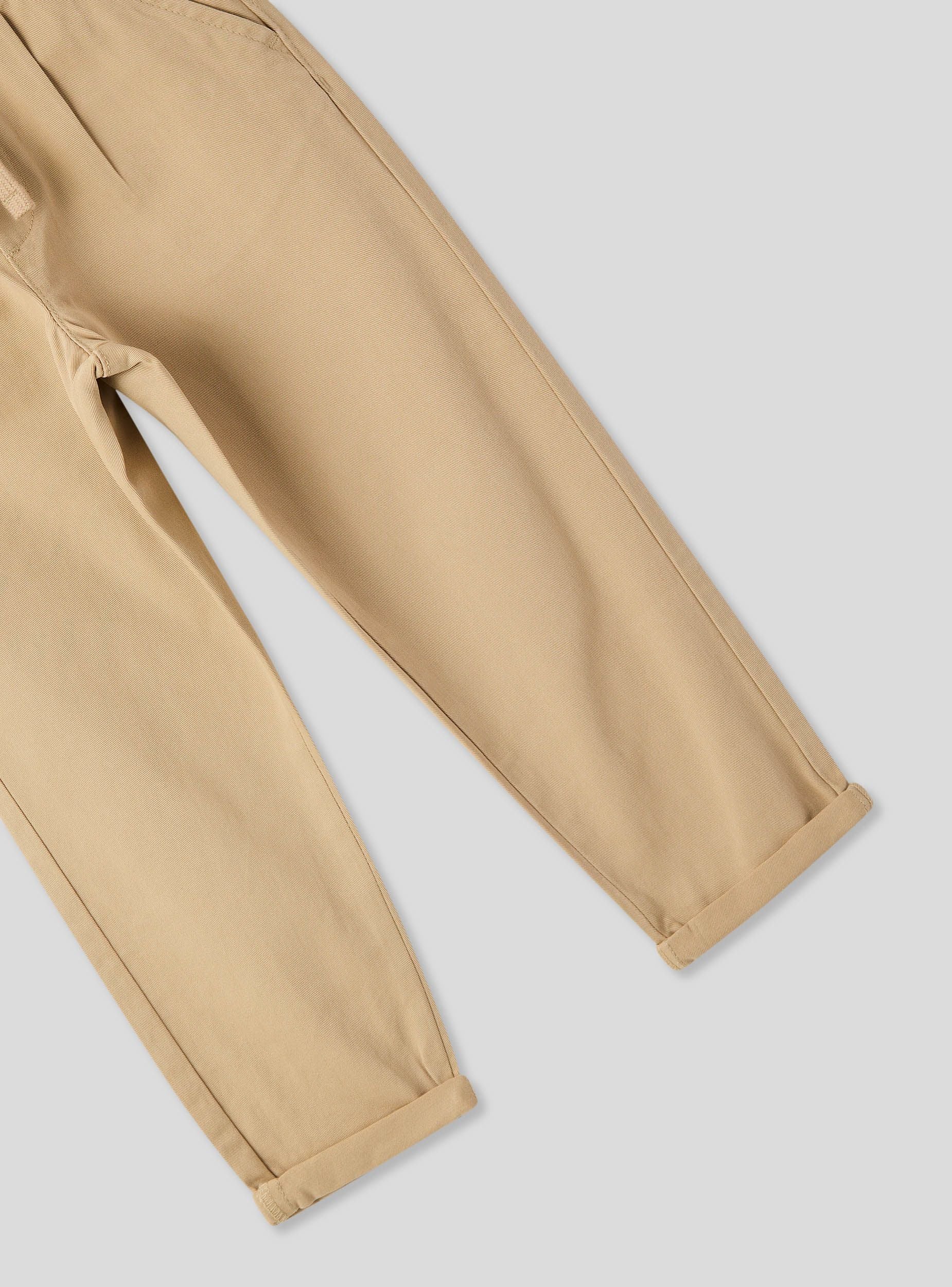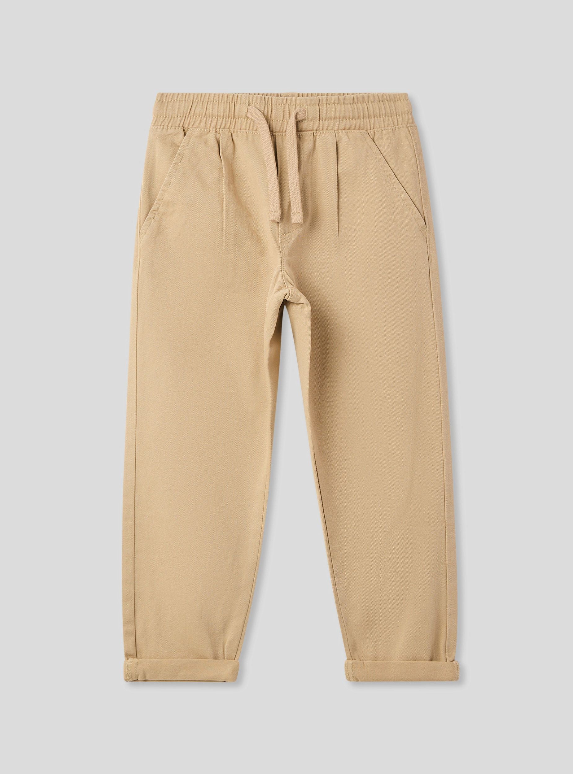 Pantaloni da bimbo lunghi perfetti per un look casual e confortevole. Il modello chino si combina con lo stile jogger, offrendo una vestibilità pratica e moderna. La tinta unita li rende facili da abbinare, mentre la coulisse garantisce una regolazione perfetta in vita. Dotati di tasche laterali, questi pantaloni sono ideali per giornate all’aperto o occasioni informali.Dettagli