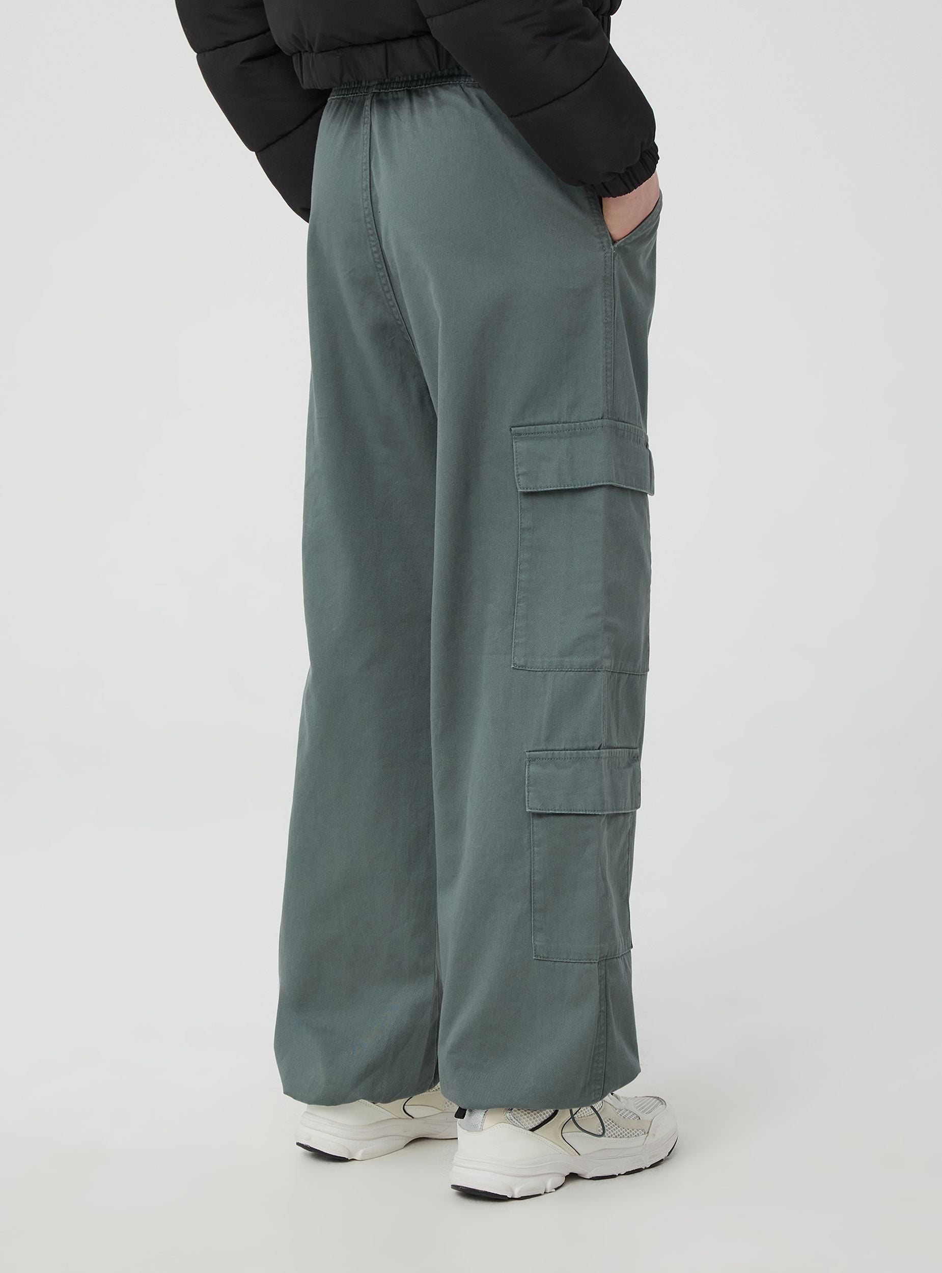 Pantaloni parachute in twill con tasconi