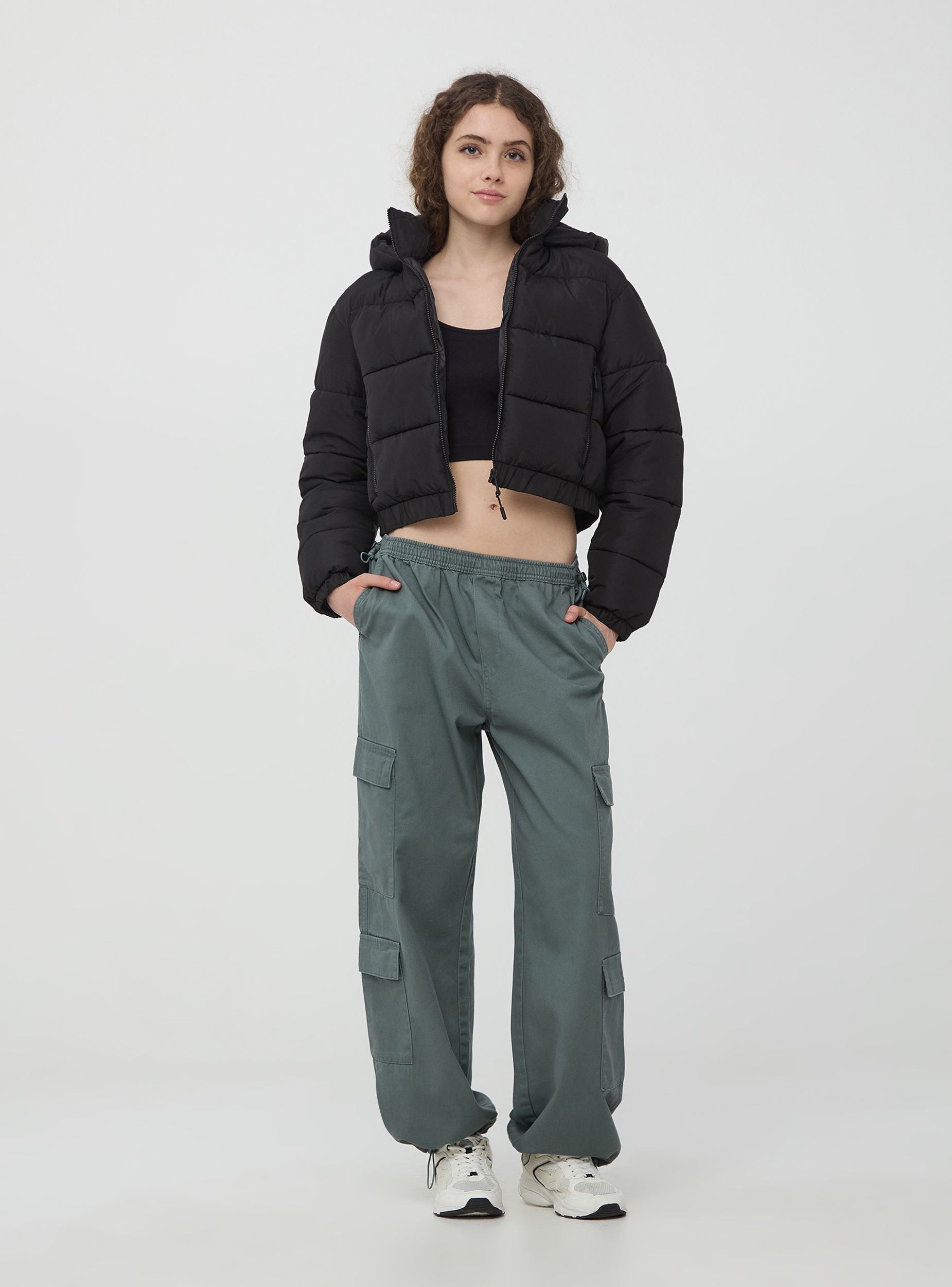 Pantaloni parachute da donna realizzati in twill di cotone, con un design che include un elastico in vita con coulisse regolabile e stopper, presenti anche sul fondo. Dotato di tasconi multipli con patta per maggiore praticità e stile, un taglio ampio e comodo per una vestibilità rilassata. Perfetti per un look casual e alla moda, questi pantaloni parachute in twill sono ideali per attività all'aperto, passeggiate in città o momenti di relax nel weekend. La loro versatilità li rende adatti sia per un abbigliamento quotidiano che per occasioni più informali.