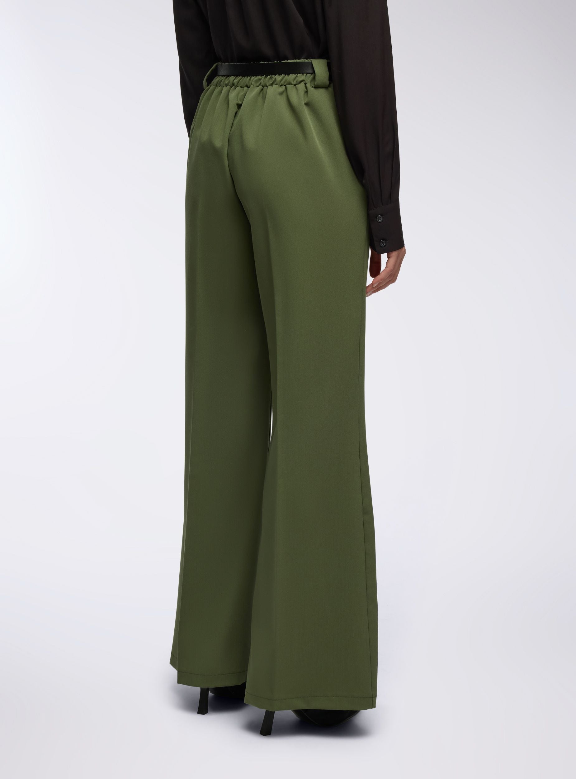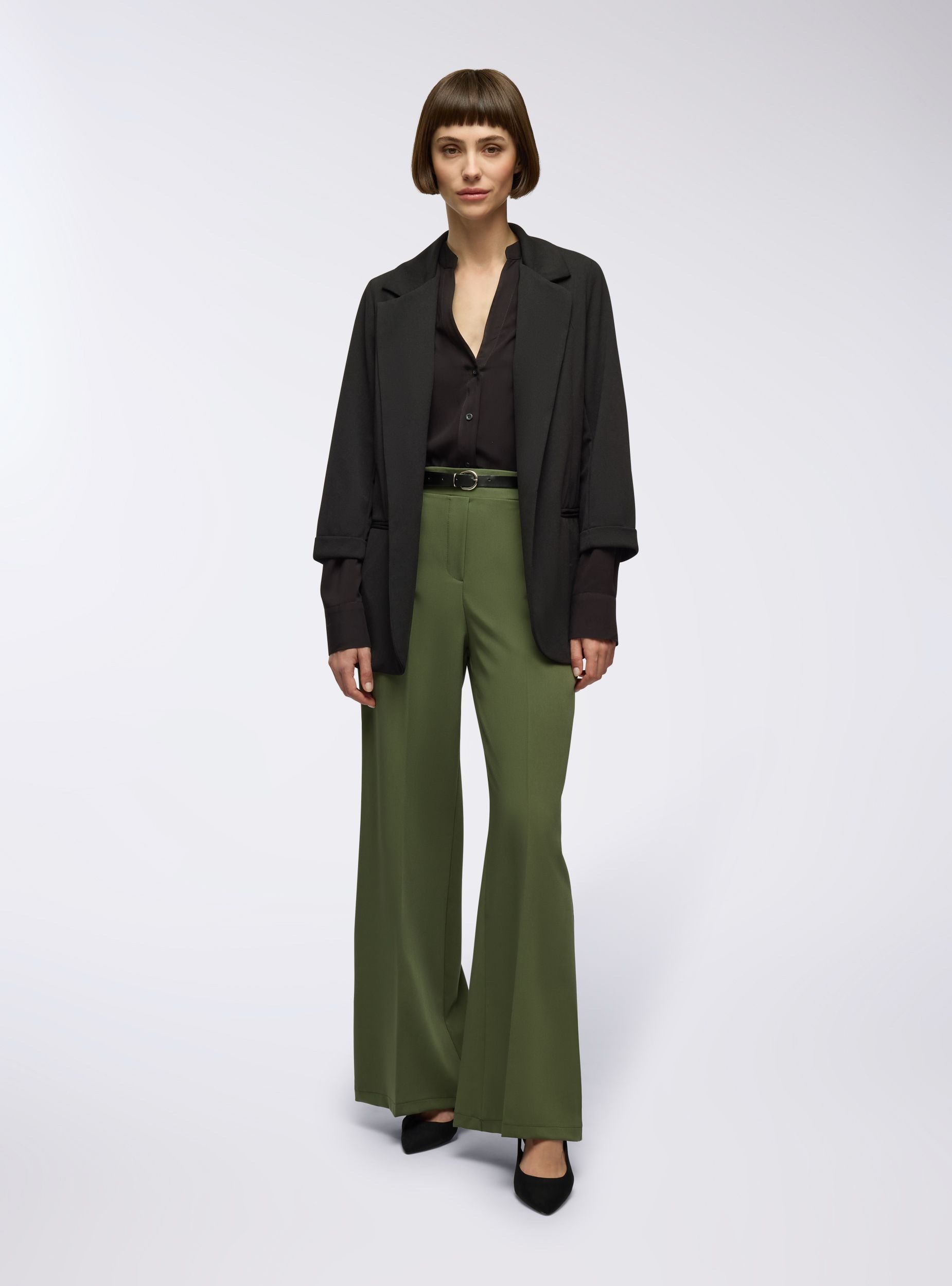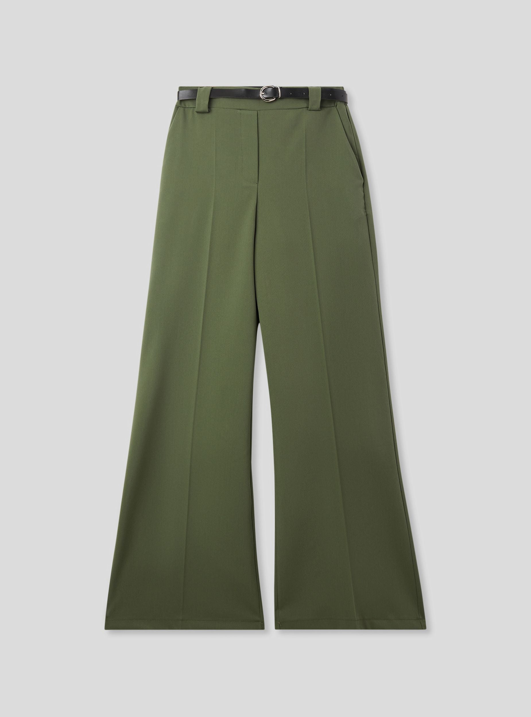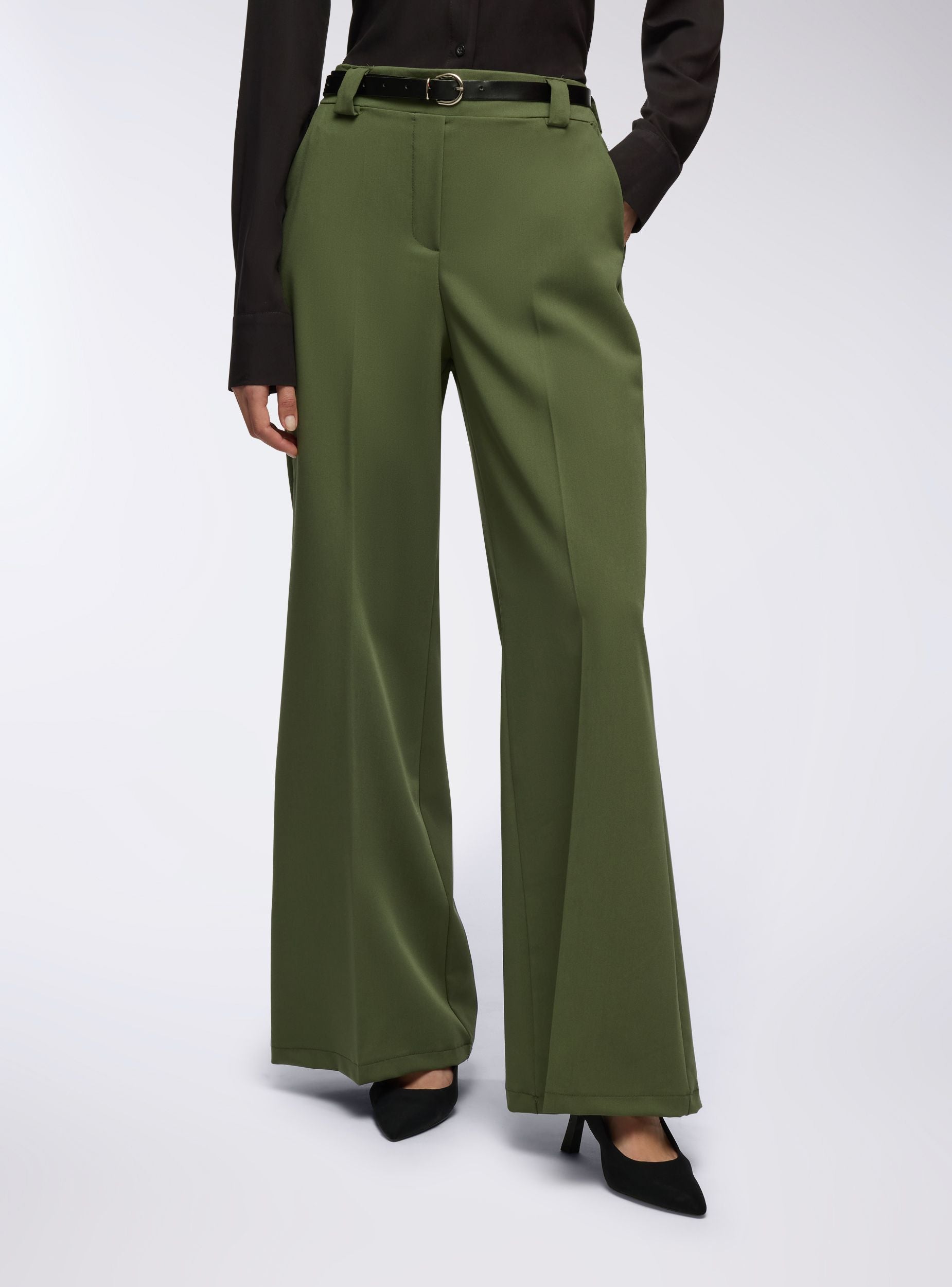 Pantaloni wide-leg da donna. Linee fluide e taglio ampio li rendono perfetti per look eleganti o casual raffinati. Il design a gamba larga slancia la figura e regala un’allure sofisticata, mentre la cintura in vita sottolinea il punto vita con un dettaglio chic. Da indossare con camicie morbide o crop top, è ideale per l’ufficio, eventi informali o uscite serali.