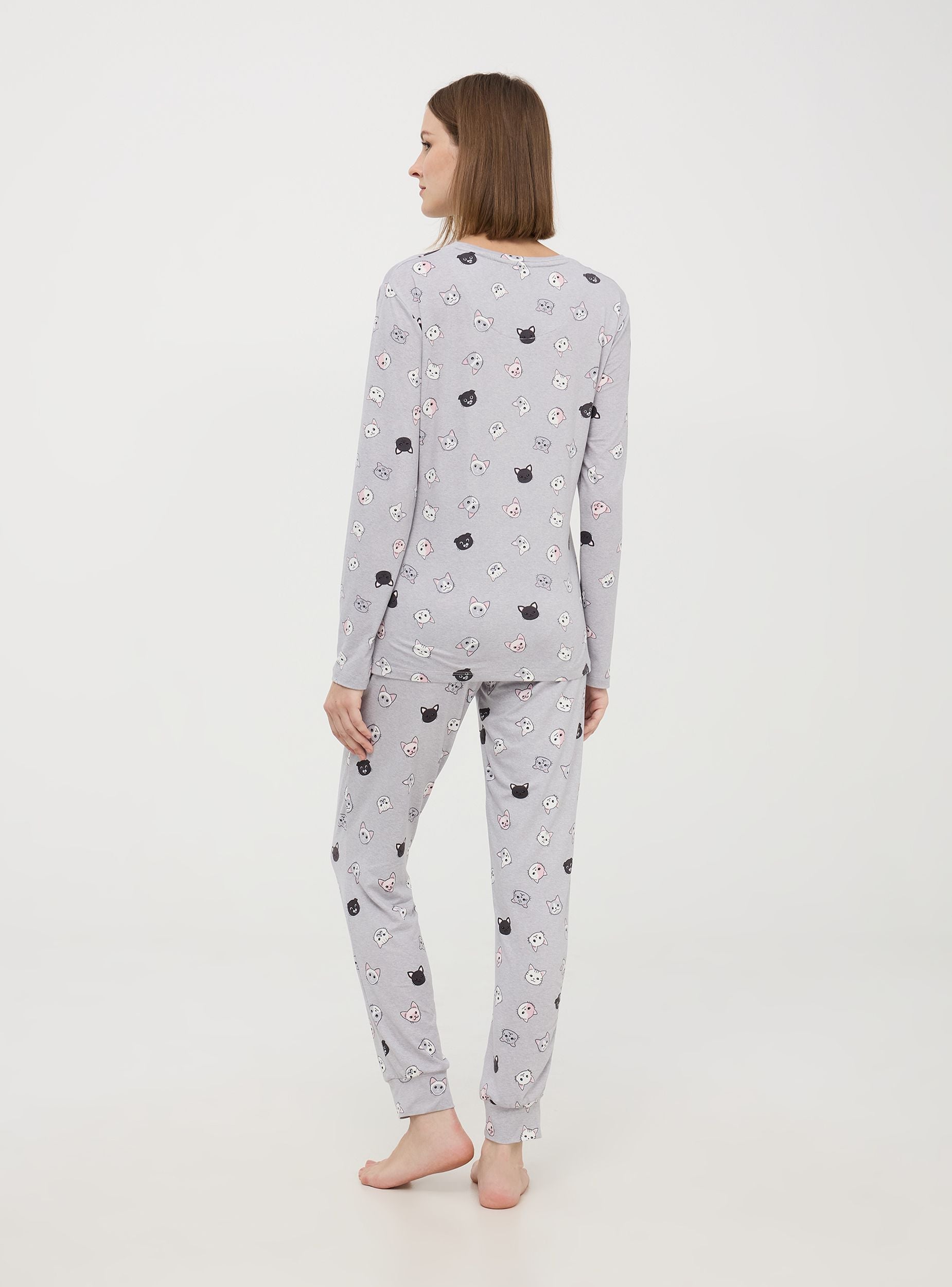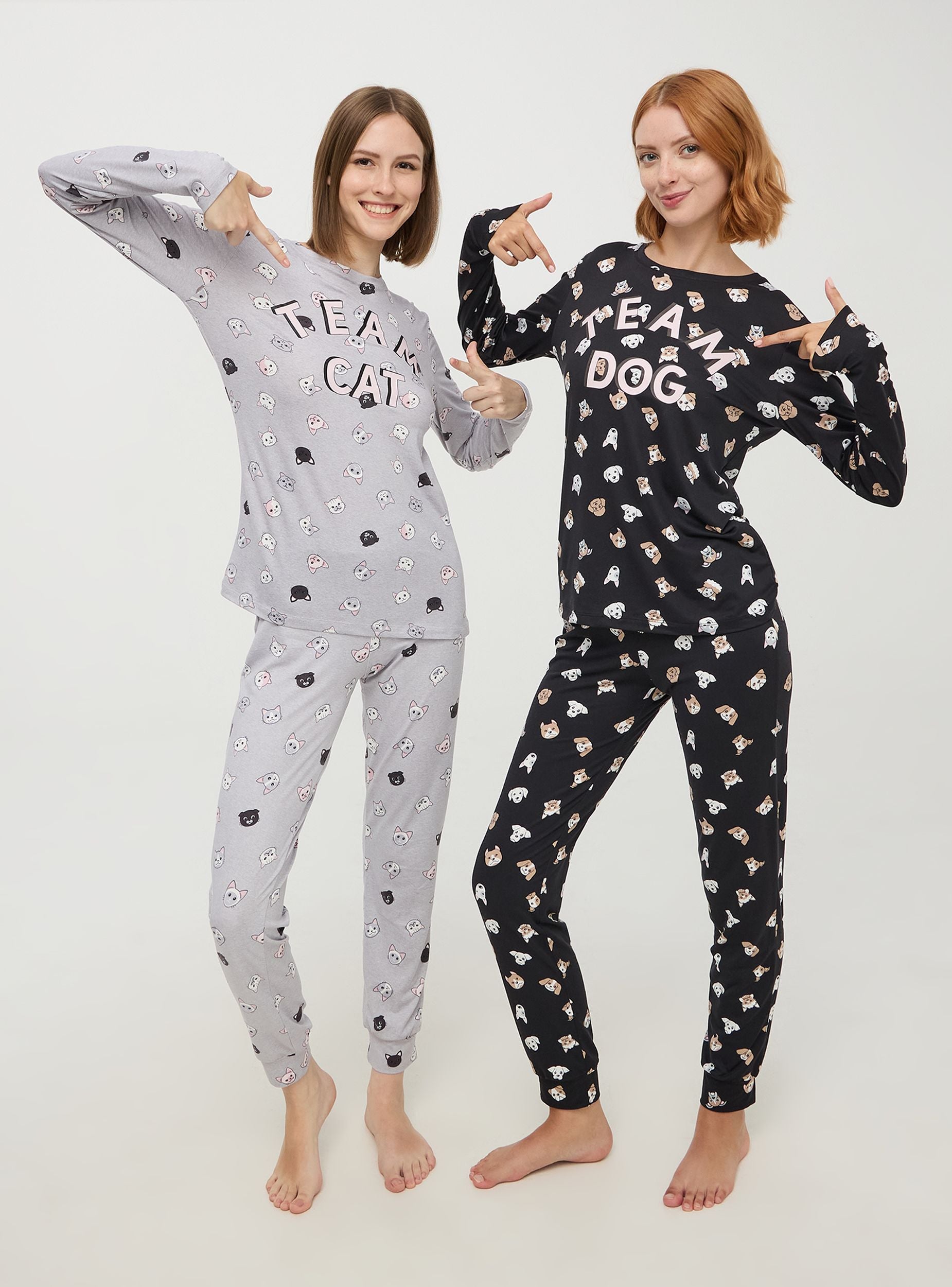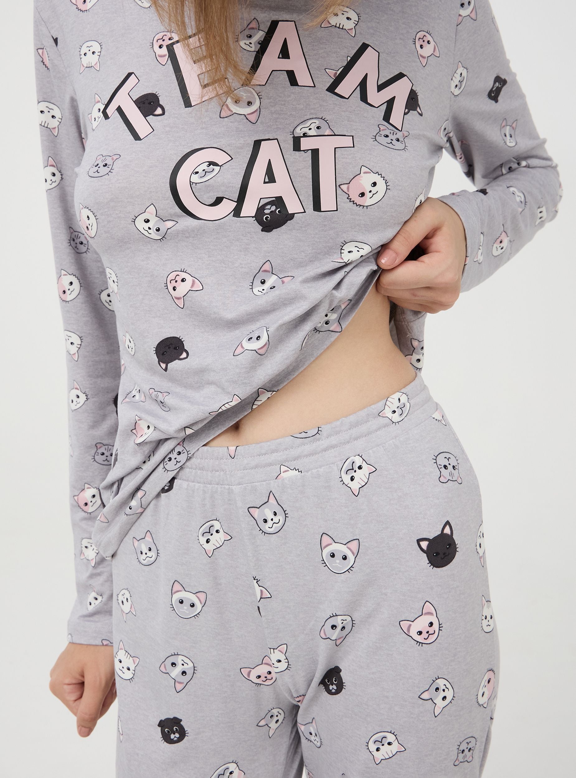 Pigiama pesante da donna a due pezzi composto da una maglia a maniche lunghe e pantaloni lunghi, entrambi con adorabili stampe di gattini e la scritta "Team Cat" sul petto. La vestibilità è rilassata, ideale per un riposo confortevole. Dotato di elastico in vita per una perfetta aderenza.Dettagli