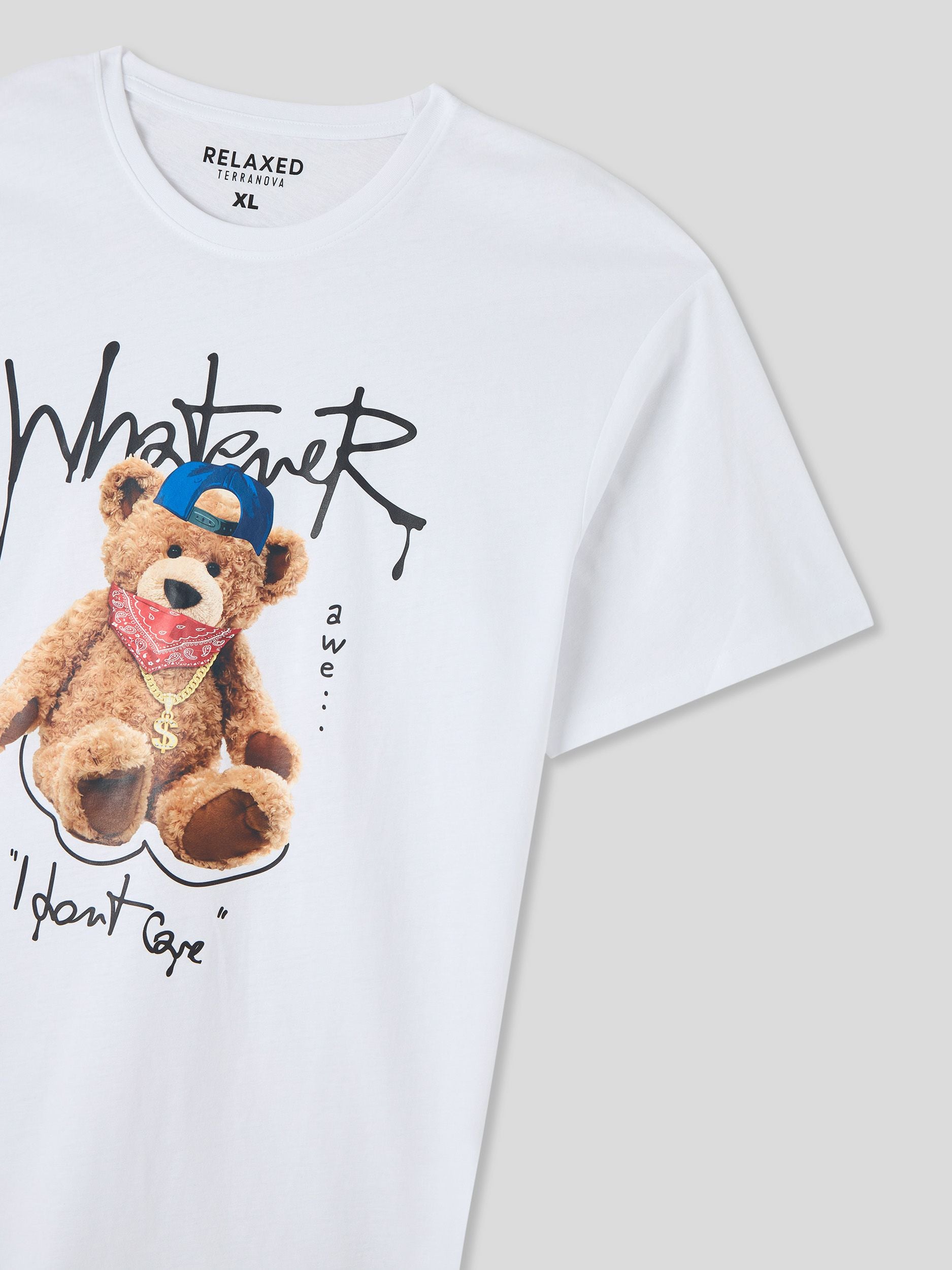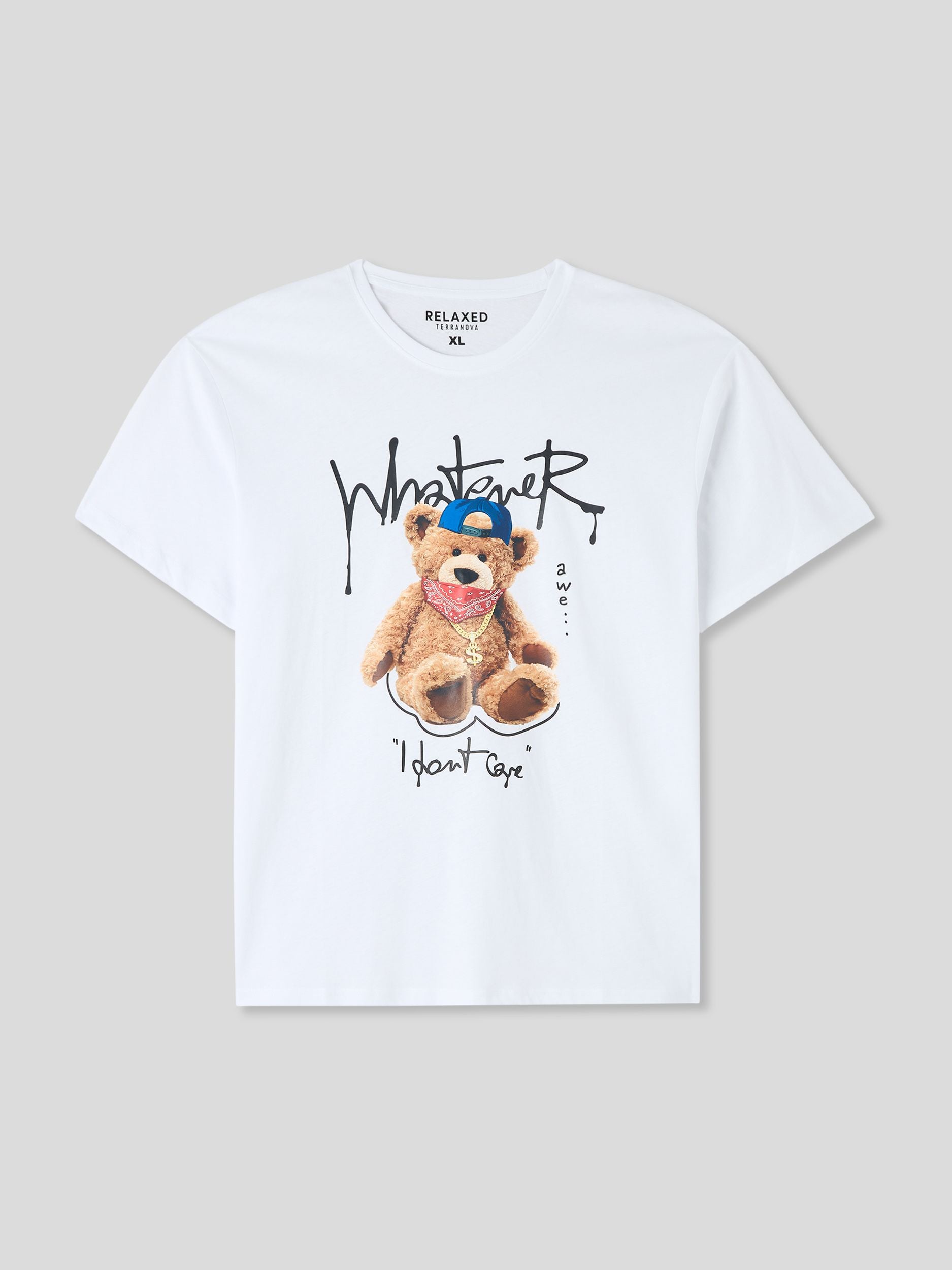 Maglietta da uomo con una simpatica stampa di un orsetto e scritte divertenti sul davanti, perfetta per un look casual e spiritoso. Il modello è a girocollo con maniche corte, offrendo una vestibilità regular. Ideale per chi desidera un tocco giocoso e originale nel proprio outfit quotidiano.