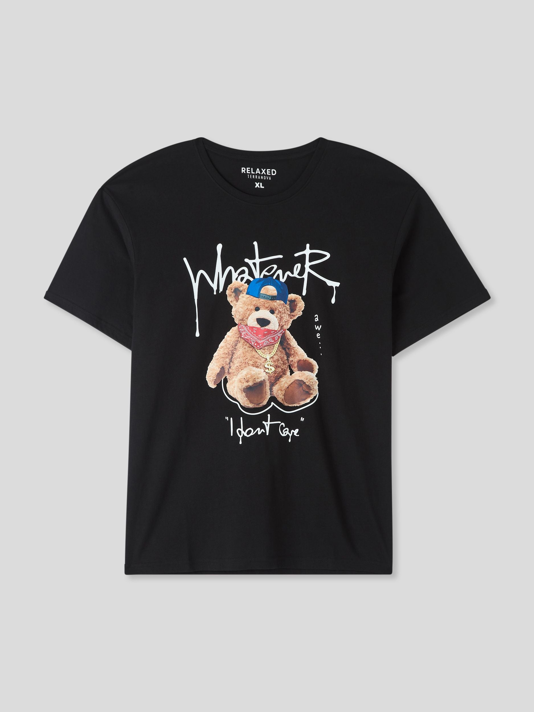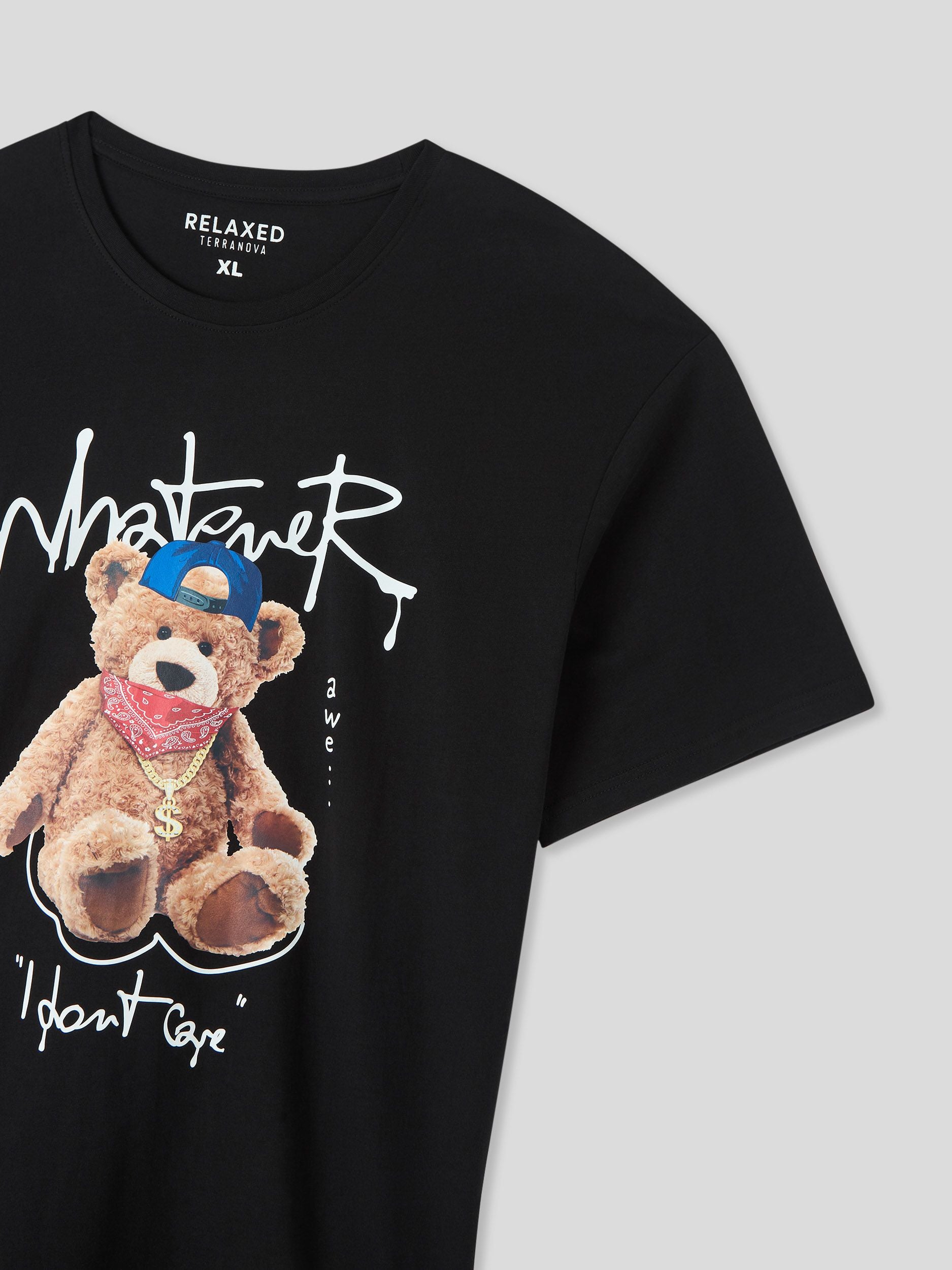 Maglietta da uomo con una simpatica stampa di un orsetto e scritte divertenti sul davanti, perfetta per un look casual e spiritoso. Il modello è a girocollo con maniche corte, offrendo una vestibilità regular. Ideale per chi desidera un tocco giocoso e originale nel proprio outfit quotidiano.