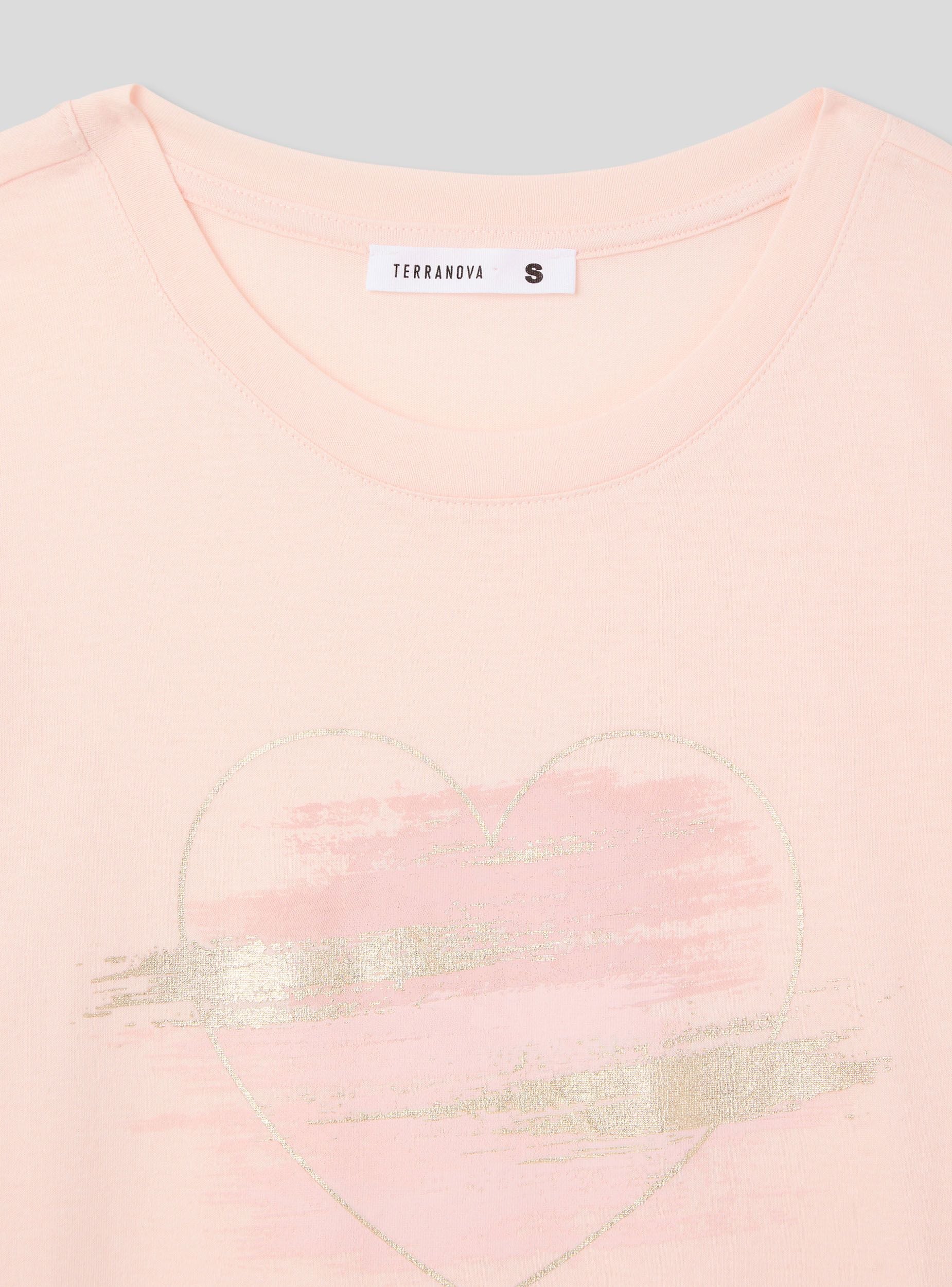 Maglietta da donna con girocollo e maniche corte, caratterizzata da una stampa laminata che aggiunge un tocco brillante e moderno al design. Il motivo a cuori stilizzati dona un aspetto romantico e delicato, perfetto per un look casual ma con un dettaglio che cattura l'attenzione. Questa t-shirt si abbina facilmente a jeans, shorts o gonne per creare outfit versatili e femminili.Dettagli