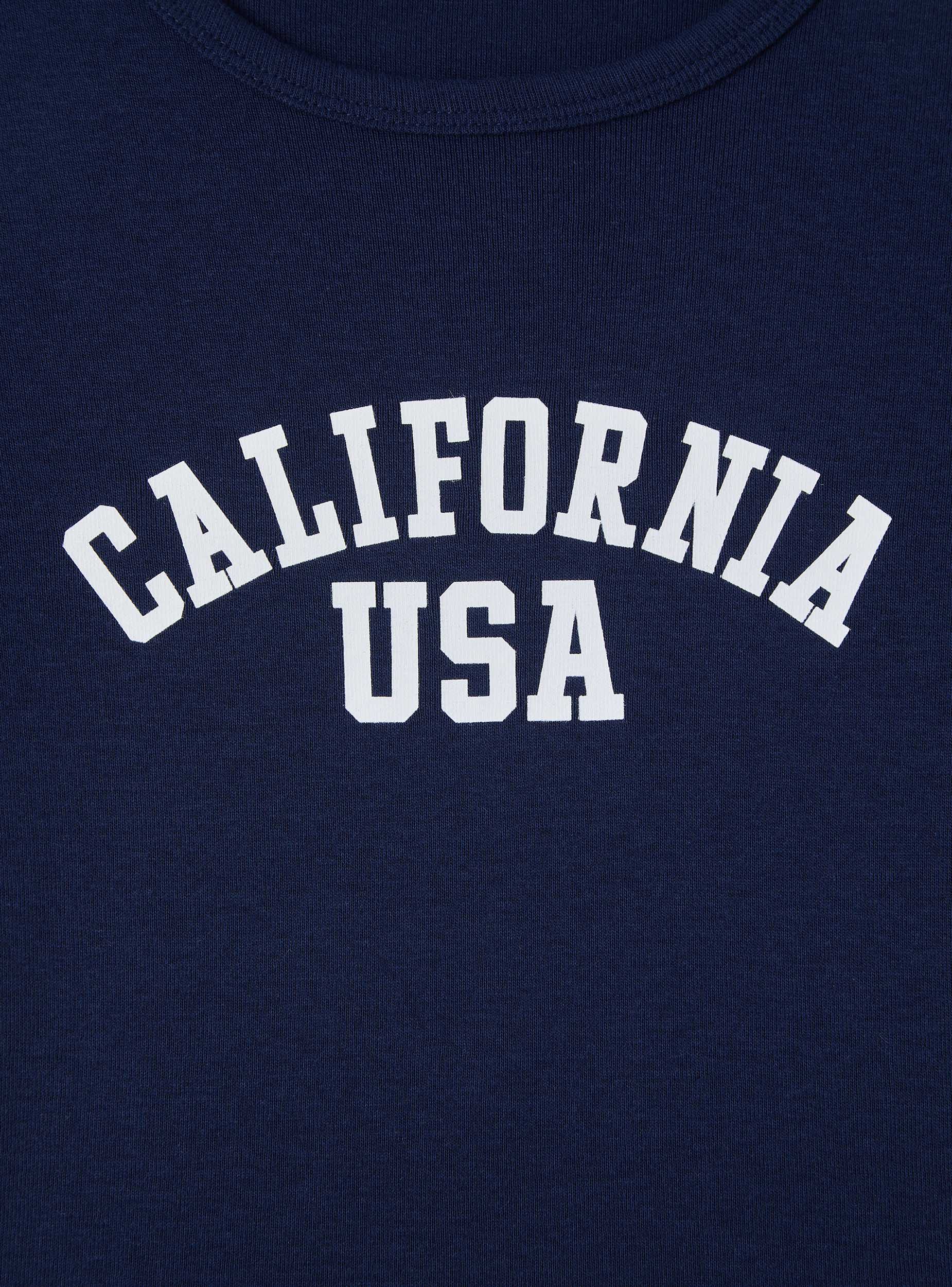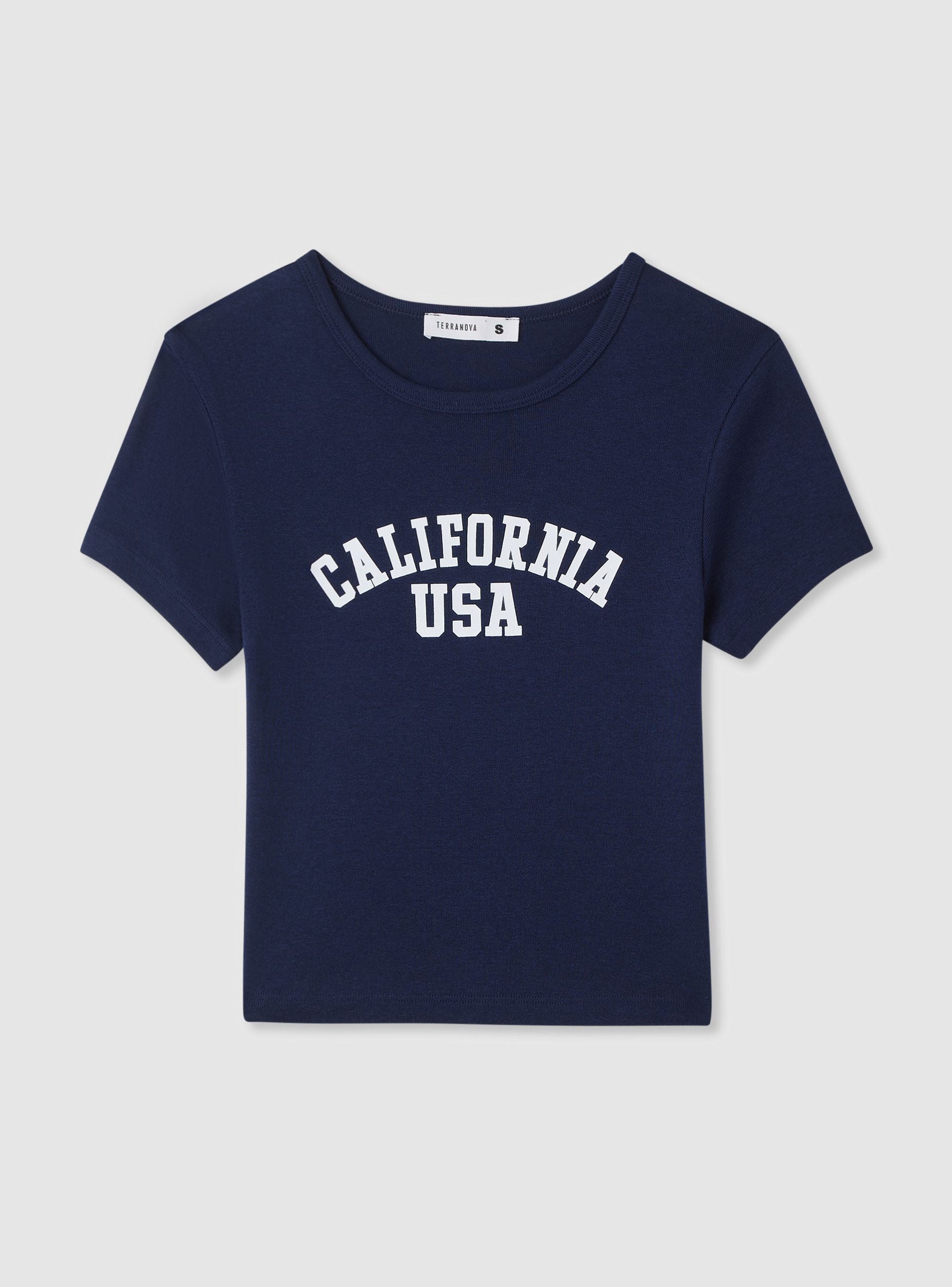 Maglietta da donna a tinta unita con scritta in stile college. Modello crop con maniche corte e girocollo, ideale per look urban con jeans a vita alta o gonne e sneakers. La vestibilità segue il taglio corto per valorizzare la silhouette. Perfetta per il tempo libero e abbinamenti a strati con overshirt o cardigan, il design essenziale aggiunge carattere grazie alla stampa frontale.Dettagli