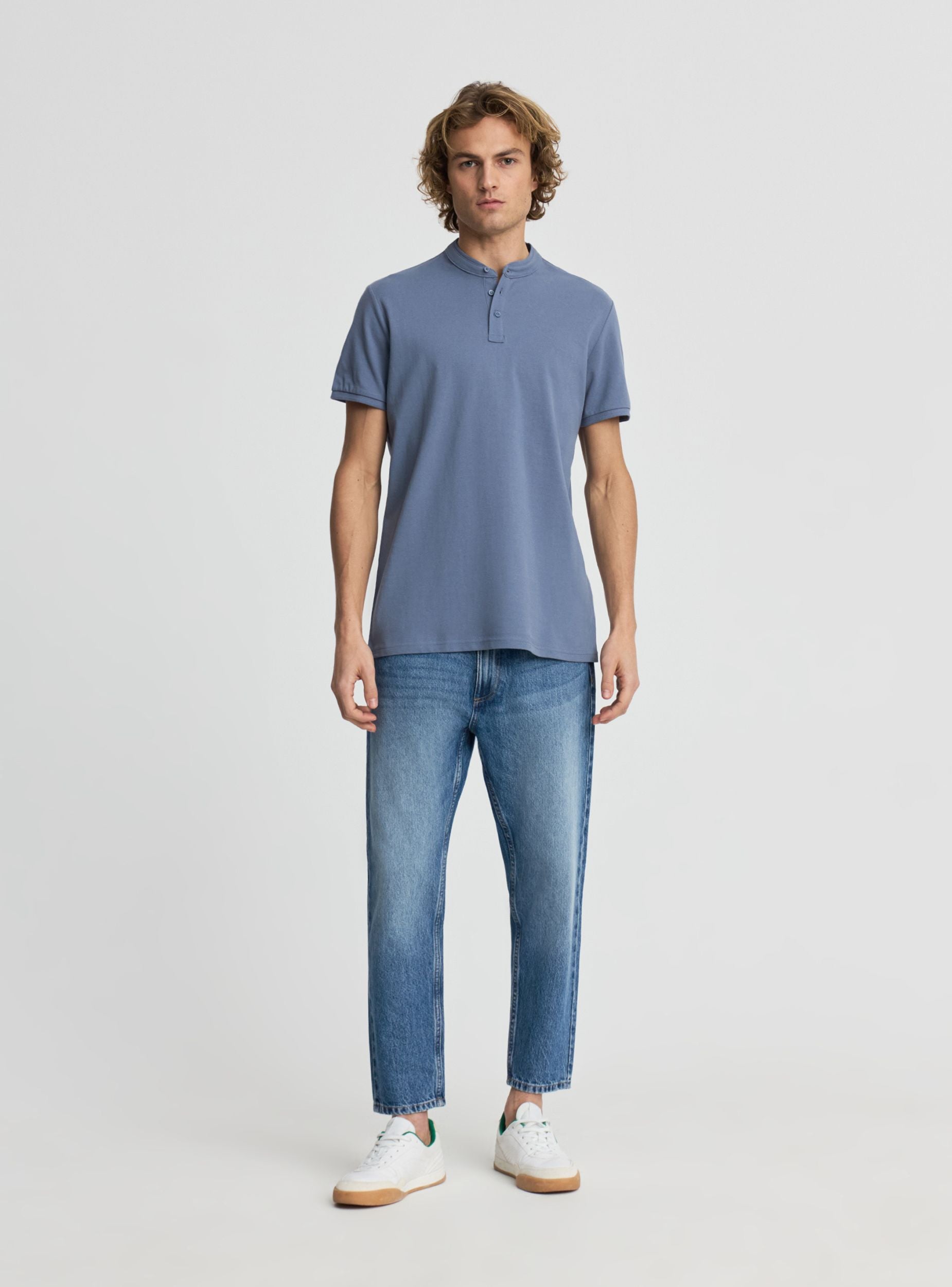 Maglietta da uomo a tinta unita con collo serafino e mezza abbottonatura a tre bottoni. Offre una vestibilità regular e maniche corte con bordo rifinito. Perfetta per look casual e urban, si abbina facilmente a jeans o chino e sneaker. Il design essenziale valorizza il girocollo con profilo coreana, ideale per l’uso quotidiano o il tempo libero.Dettagli