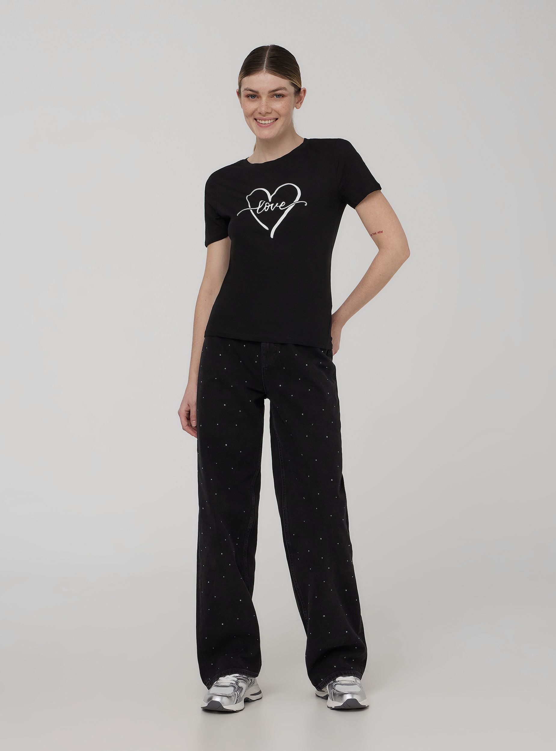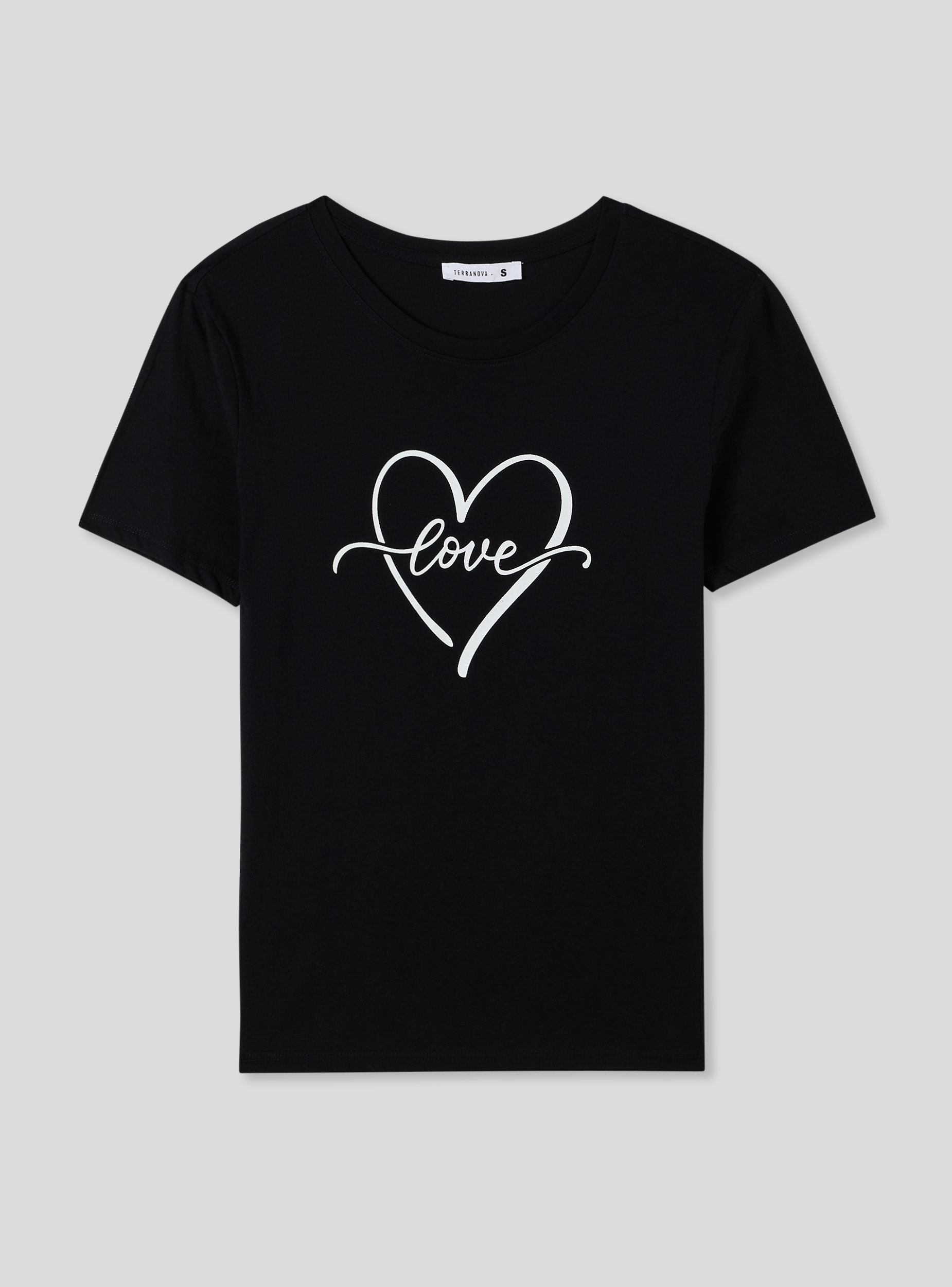 T-shirt stampa cuore con scritta - Nero