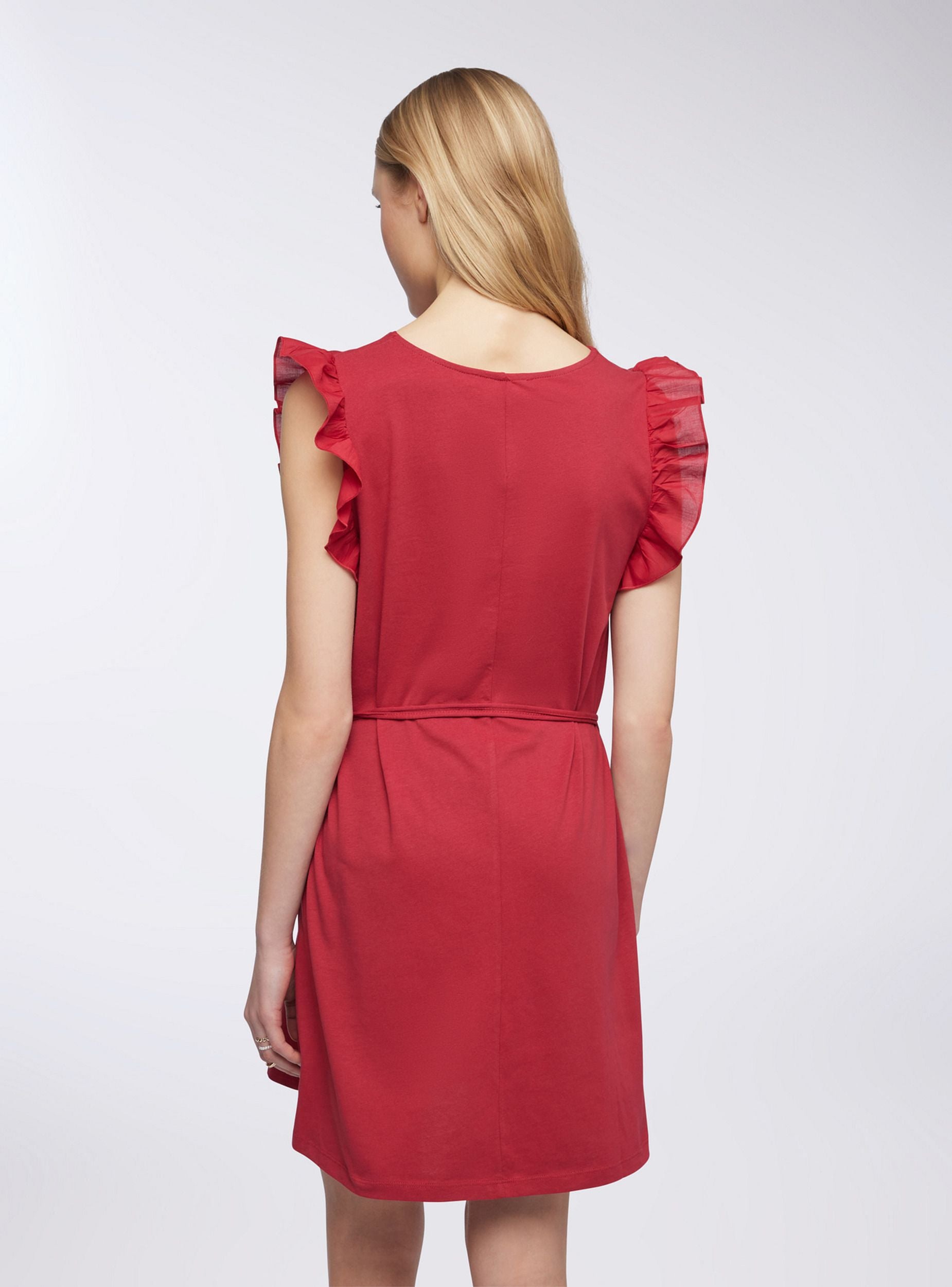 Vestito con cinturina e balze - Rosso scuro