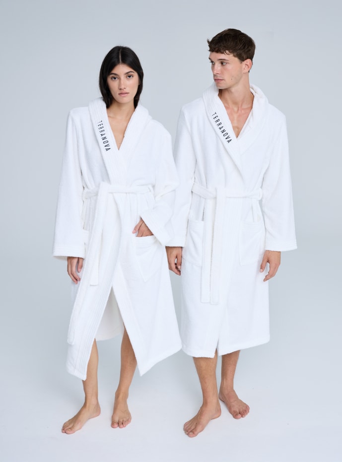 Accappatoio in spugna morbida con ricamo logo TRN Bianco ottico