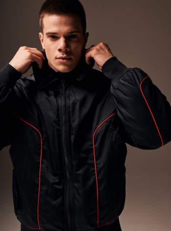 Anorak da uomo con cappuccio e dettagli a contrasto. Presenta una chiusura frontale a mezza zip, tasca frontale con velcro, tasche laterali e coulisse regolabili all'orlo per una vestibilità personalizzata. Il design è caratterizzato da linee moderne e funzionali, ideale per la stagione invernale, offrendo protezione dal freddo e dal vento. Le cuciture e i dettagli sono progettati per garantire durata e comfort. Questo articolo fa parte del progetto TRNPOPLAB nato dalla collaborazione con NABA Milano. Gli studenti di fashion design hanno dato vita a collezioni ispirate ai trend più cool del momento. E ora vedranno le loro creazioni prendere vita e arrivare direttamente nelle tue mani!
