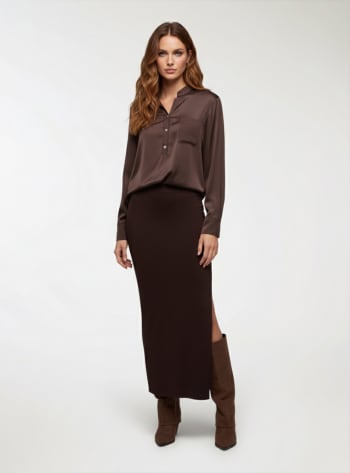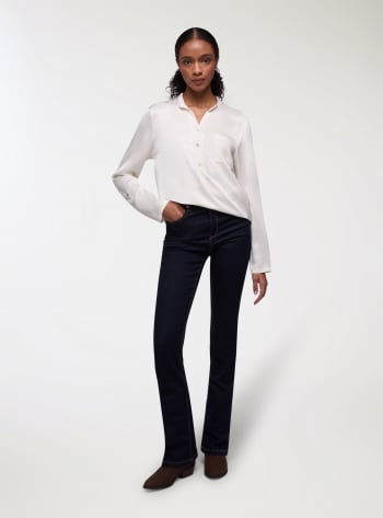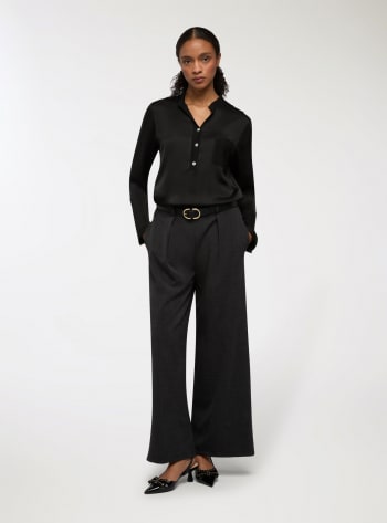 Camicia da donna a tinta unita con maniche lunghe e colletto alla coreana, caratterizzata da un design essenziale e raffinato. Perfetta per un look casual ma elegante, si adatta bene sia a contesti informali che a occasioni più formali, come giornate in ufficio o cene fuori. La sua versatilità la rende ideale per essere abbinata a diversi capi, garantendo uno stile equilibrato e curato.