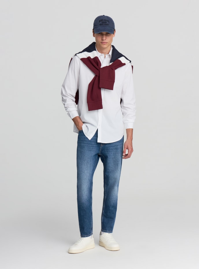 Camicia da uomo a tinta unita ideale per occasioni formali e professionali. Il design presenta un colletto classico, maniche lunghe con polsini abbottonati e chiusura frontale con bottoni. Vestibilità regolare che assicura comfort durante tutta la giornata. Perfetta da indossare con pantaloni eleganti o sotto una giacca per un look curato e versatile.