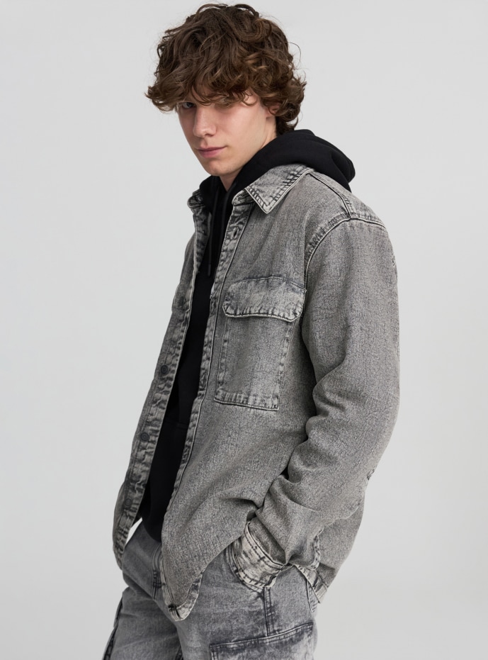 Camicia da uomo con maniche lunghe e design in denim. Presenta un colletto classico e una chiusura con bottoni. Ideale per un look casual, si abbina perfettamente a pantaloni o jeans per un outfit versatile. La vestibilità regolare garantisce comfort e stile in ogni occasione.