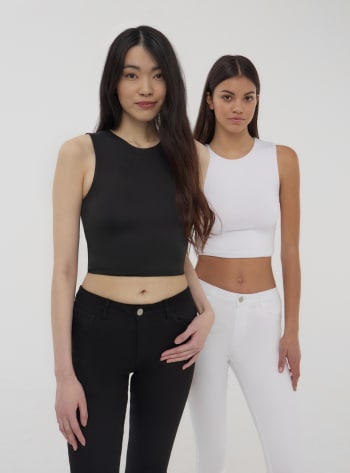 Canotta da donna caratterizzata da una tinta unita e realizzata in tessuto elasticizzato che la rende leggera e morbida sulla pelle. Il design presenta uno scollo ampio sul davanti, donando un tocco femminile e moderno. Il tessuto elasticizzato si adatta delicatamente alle forme del corpo, assicurando comfort e libertà di movimento. Ideale per la stagione estiva, grazie al suo look minimalista e pratico, perfetta per essere indossata sia come capo casual che sportivo.