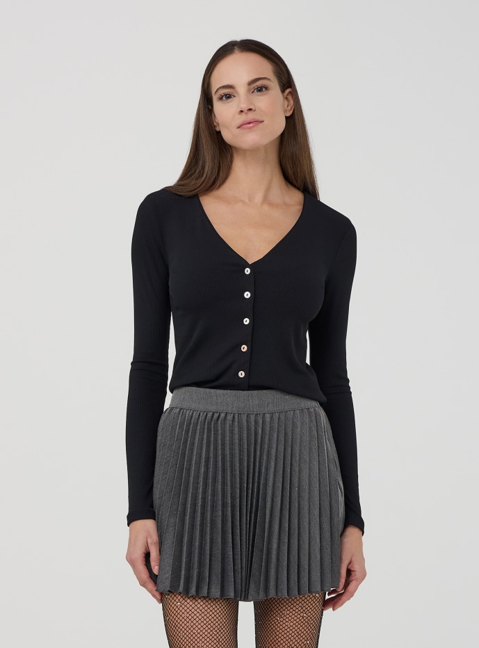 Cardigan da donna a maniche lunghe con scollo a V, ideale per completare qualsiasi outfit con eleganza e semplicità. Il design in tinta unita e la fila di bottoni sul davanti conferiscono un aspetto minimalista e versatile, perfetto sia per occasioni casual che formali. Un capo essenziale per aggiungere stile e comfort al tuo guardaroba quotidiano.
