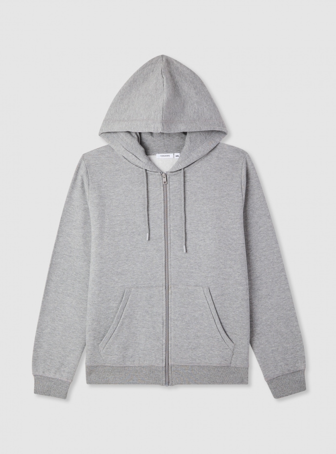 Felpa basica con cappuccio e zip Grigio medio melange