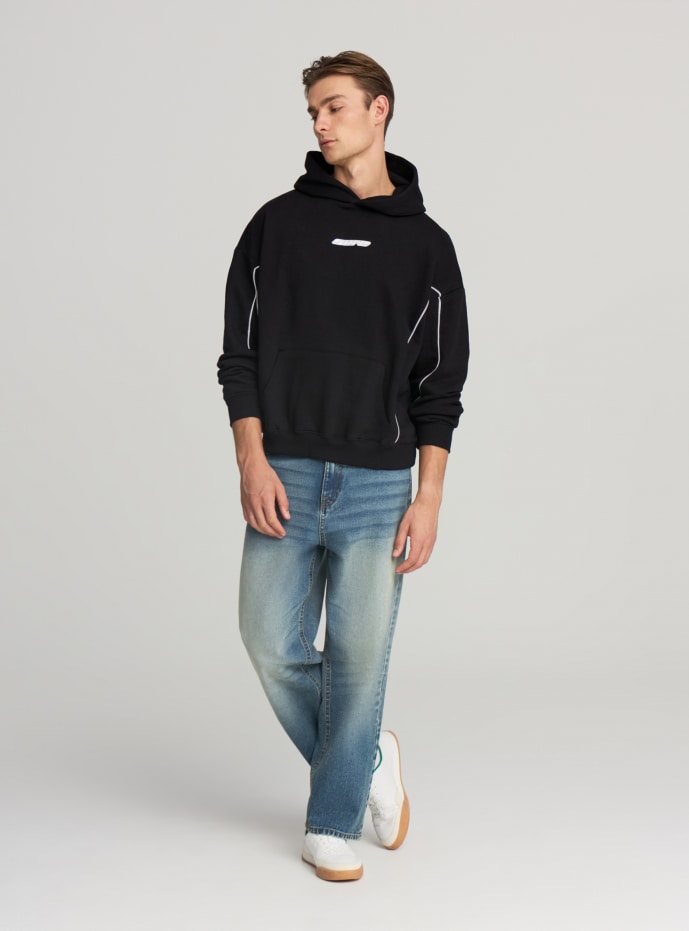 Felpa da uomo con cappuccio, ideale per il tempo libero e look urban. Modello senza zip, tasca a marsupio frontale e vestibilità regular. Presenta stampa centrale sul petto e profili a contrasto che slanciano i fianchi. Polsi e fondo a costine per maggiore comfort. Perfetta con jeans o jogger e sneakers per uscite in città o momenti di relax.
