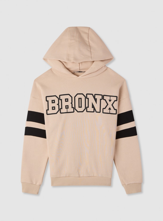 Felpa con cappuccio con stampa sport Avorio