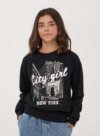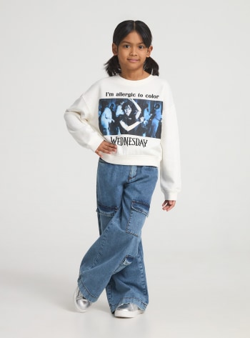 Felpa pesante da bambina con una vivace stampa Hello Kitty®, perfetta per un look casual e alla moda. Modello senza cappuccio e senza zip presenta un design a maniche lunghe e un pratico girocollo, ideale per un comfort quotidiano. L'orlo e i polsini elasticizzati con la stampa accattivante frontale rendono questa felpa un capo distintivo e versatile, adatto a ogni occasione. Un'aggiunta irrinunciabile per le piccole fan del personaggio.