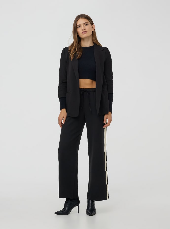 Giacca aperta destrutturata da donna. Caratterizzata da un design leggero e fluido senza elementi rigidi o imbottiture. La giacca presenta un taglio rilassato, senza chiusura frontale, conferendo un aspetto casual e moderno. Le spalle sono morbide, senza cuciture rigide, e la linea del corpo cade liberamente, seguendo la forma naturale senza costrizioni. Perfetta per un abbigliamento versatile che si adatta sia a contesti lavorativi che a situazioni più rilassate, mantenendo uno stile elegante ma disinvolto.