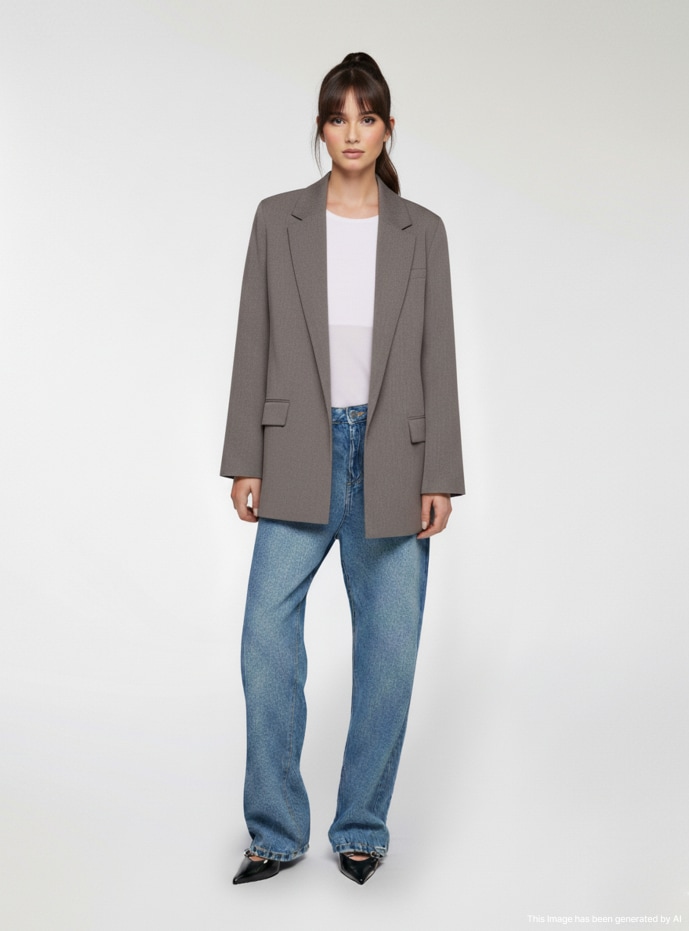 Giacca da donna con design aperto, ideale per un look formale o casual. Presenta una vestibilità regolare. Perfetta per essere abbinata a pantaloni eleganti o jeans per un outfit versatile. Il colletto classico e le maniche lunghe completano il design, rendendola adatta a diverse occasioni.