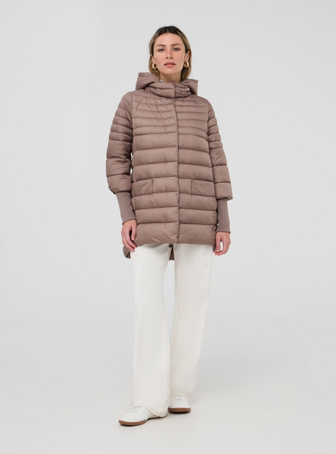 Giaccone da donna imbottito, caratterizzato da un design a tinta unita, perfetto per le giornate più fredde. Presenta un comodo cappuccio, ideale per proteggersi dal vento e dalla pioggia, e un collo alto per garantire una maggiore copertura e calore. Dotato di pratiche tasche, offre ampio spazio per riporre piccoli oggetti o per scaldare le mani. Questo capo dal taglio lungo è un'ottima scelta per chi cerca comfort e stile in un unico capo.