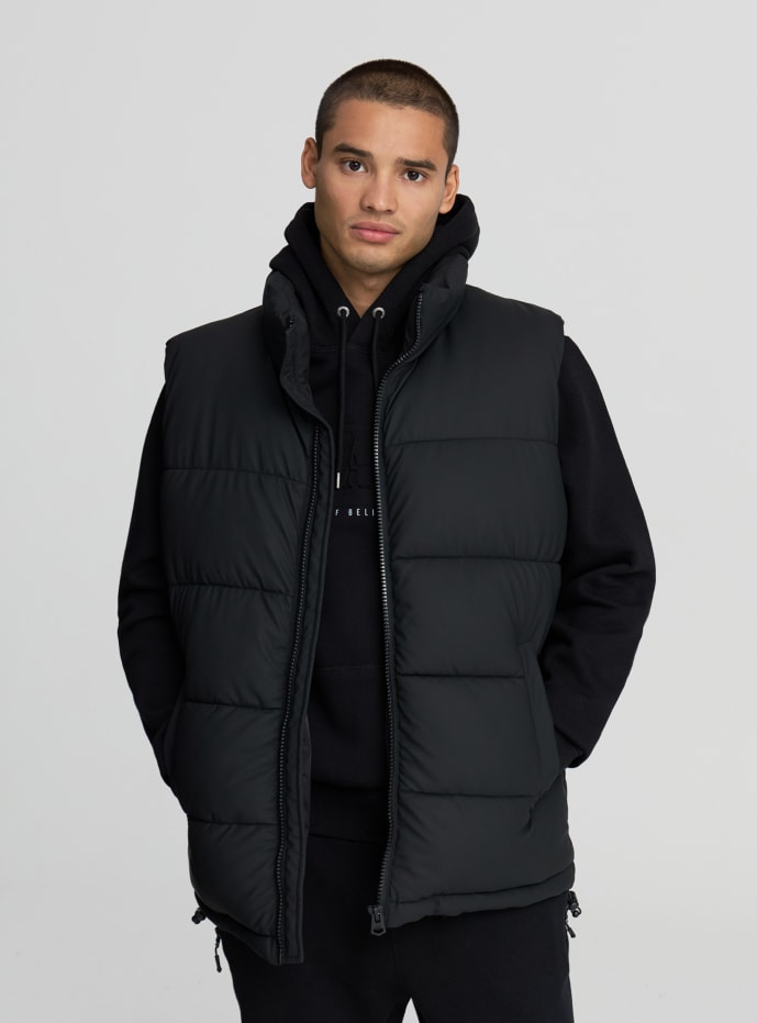 Gilet imbottito da uomo ideale per le mezze stagioni, perfetto per aggiungere uno strato extra di calore senza rinunciare alla libertà di movimento. Il design presenta un colletto alto, stopper sul fondo, chiusura con zip e pratiche tasche laterali. Vestibilità regolare, si abbina facilmente a felpe o maglie per un look casual e versatile, adatto sia per il tempo libero che per le uscite in città. Realizzato a tinta unita effetto gommato.