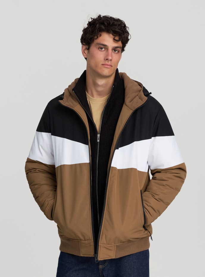 Giubbino imbottito da uomo, ideale per un look casual e moderno. Dotato di cappuccio regolabile e chiusura con zip, offre una vestibilità comoda e pratica. Presenta un design a blocchi di colore che aggiunge un tocco di stile unico. Le tasche laterali con zip garantiscono funzionalità e sicurezza per gli oggetti personali. Perfetto per le giornate fresche, si abbina facilmente a jeans e sneakers per un outfit versatile e alla moda.