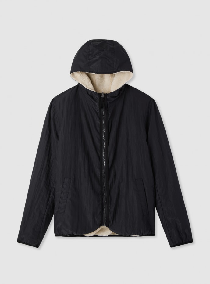 Giubbotto imbottito da uomo in tinta unita con cappuccio e chiusura con zip. Fodera effetto sherpa che offre calore nelle giornate fredde, maniche lunghe e vestibilità regular. Tasche laterali a filetto per riporre l’essenziale. Ideale per look casual con jeans e sneakers o per il tempo libero, grazie al design essenziale e versatile.